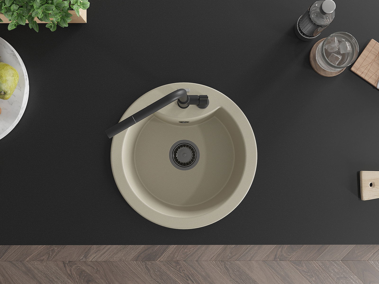 Мивката е направена от висококачествен гранит. Това е елегантно и най -вече практично допълнение към всяка кухня, независимо от нейния стил. Висококачествената и гранитна издръжливост осигуряват много години употреба.
