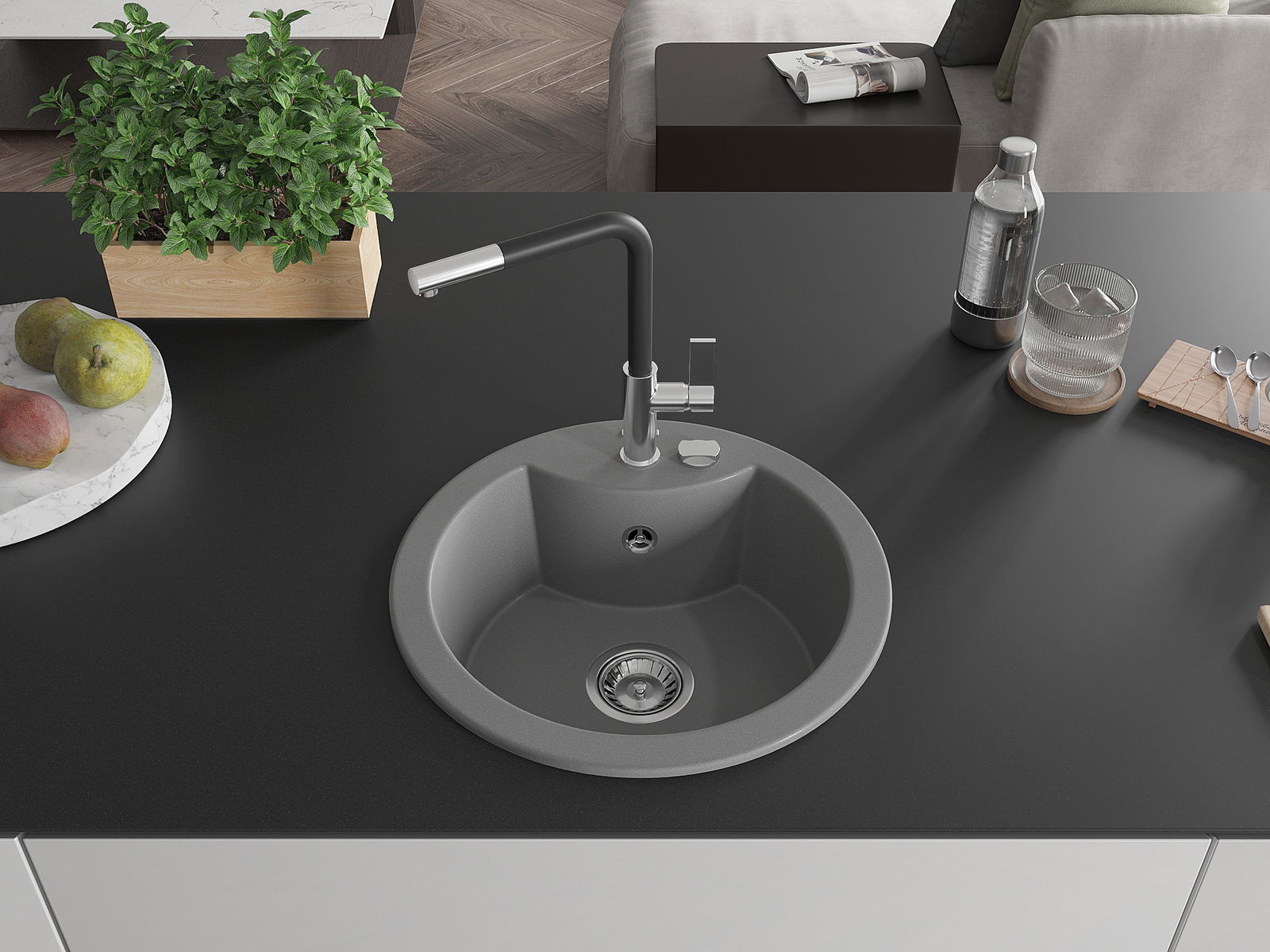 Мивката е направена от висококачествен гранит. Това е елегантно и най -вече практично допълнение към всяка кухня, независимо от нейния стил. Висококачествената и гранитна издръжливост осигуряват много години употреба.