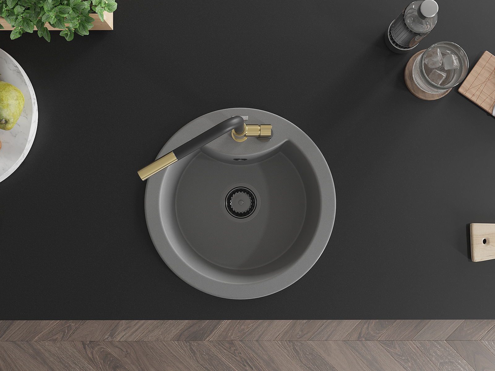 Mexen Diego гранитна мивка с 1 отделение с кухненски смесител Flora, сива