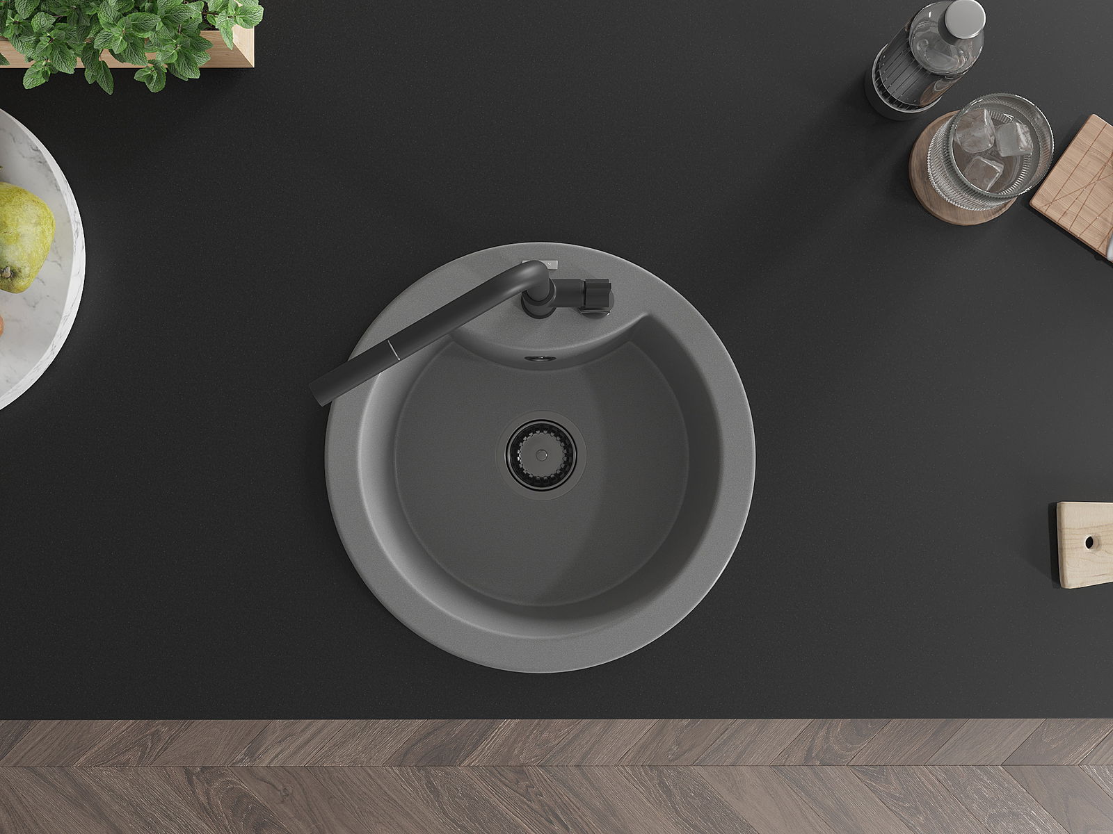 Мивката е направена от висококачествен гранит. Това е елегантно и най -вече практично допълнение към всяка кухня, независимо от нейния стил. Висококачествената и гранитна издръжливост осигуряват много години употреба.