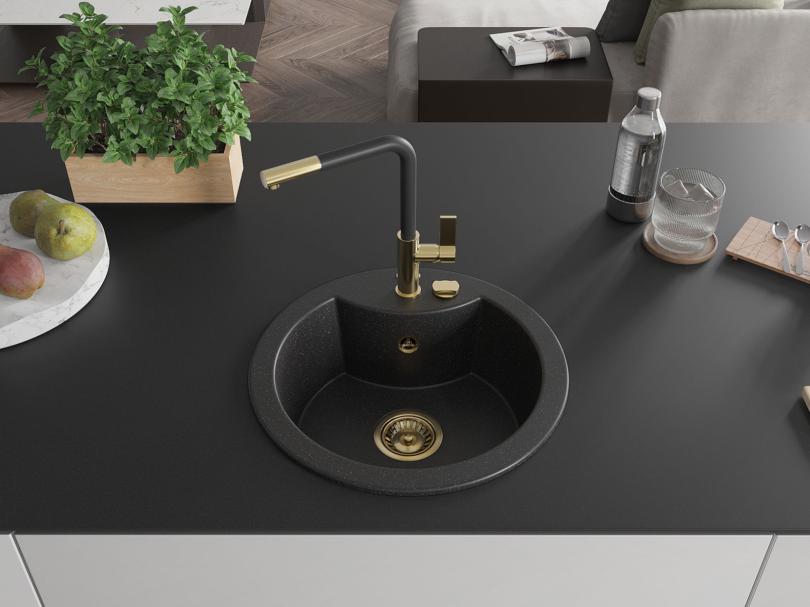 Мивката е направена от висококачествен гранит. Това е елегантно и най -вече практично допълнение към всяка кухня, независимо от нейния стил. Висококачествената и гранитна издръжливост осигуряват много години употреба.