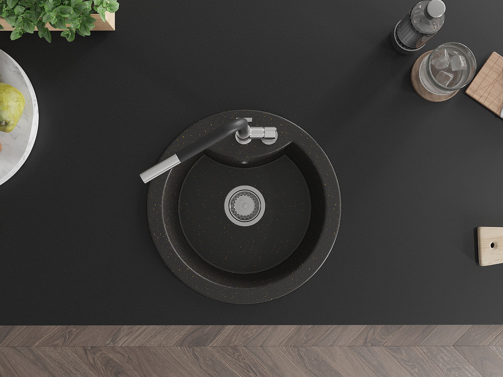 Мивката е направена от висококачествен гранит. Това е елегантно и най -вече практично допълнение към всяка кухня, независимо от нейния стил. Висококачествената и гранитна издръжливост осигуряват много години употреба.
