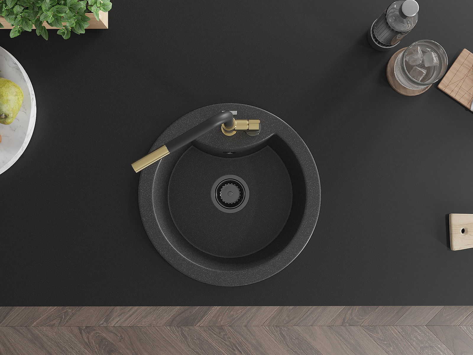 Мивката е направена от висококачествен гранит. Това е елегантно и най -вече практично допълнение към всяка кухня, независимо от нейния стил. Висококачествената и гранитна издръжливост осигуряват много години употреба.