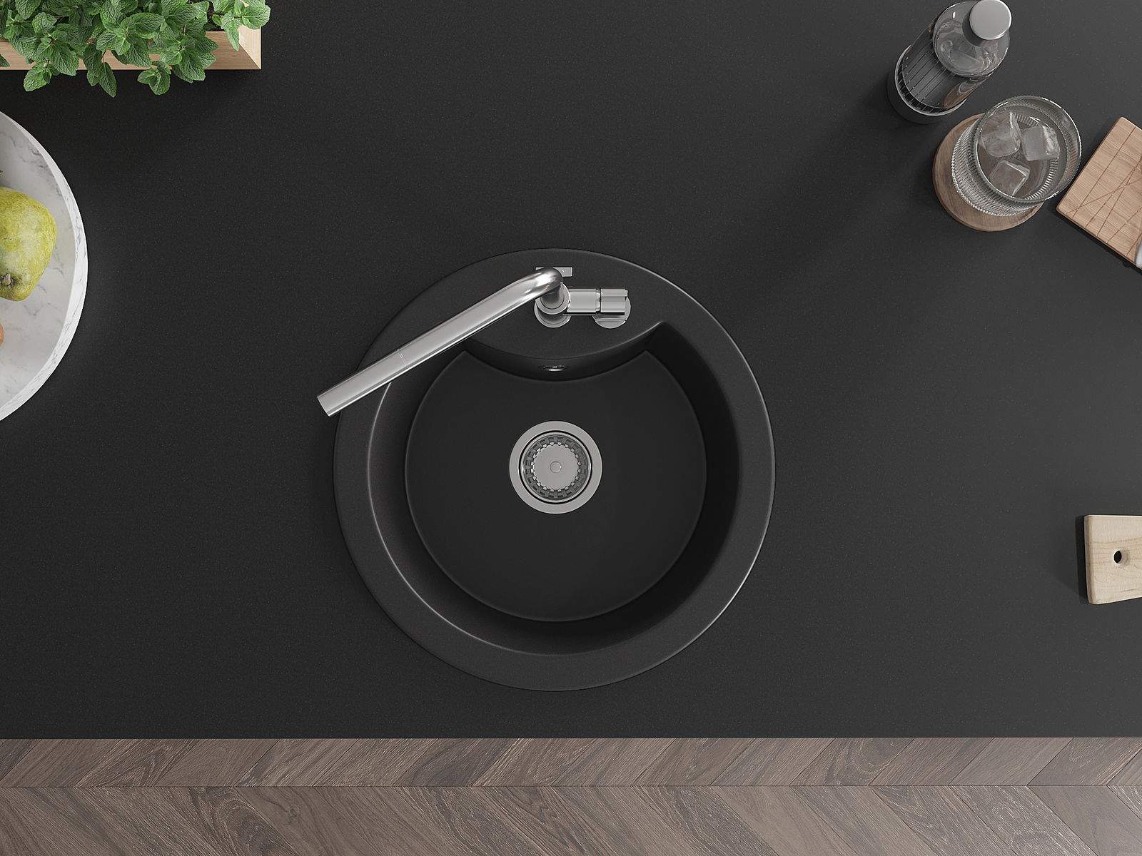 Мивката е направена от висококачествен гранит. Това е елегантно и най -вече практично допълнение към всяка кухня, независимо от нейния стил. Висококачествената и гранитна издръжливост осигуряват много години употреба.