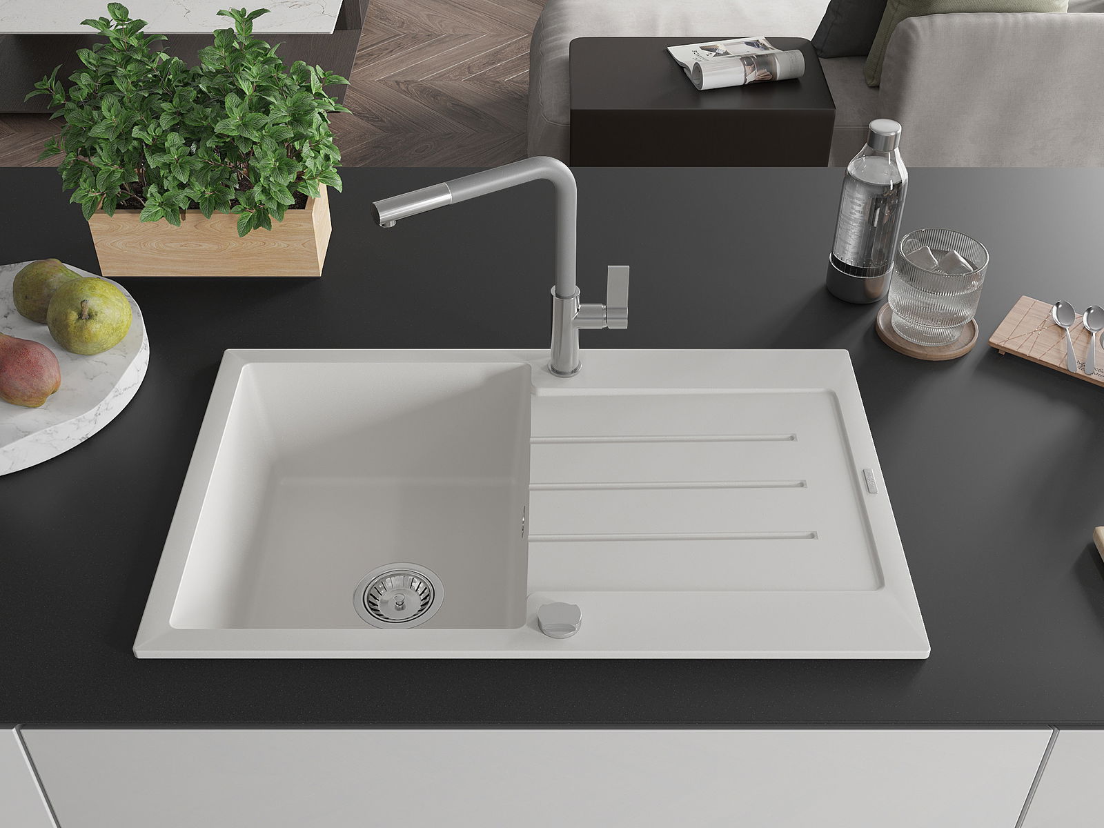 Повърхността на мивката е устойчива на петна и оцветявания, благодарение на което е лесна за поддържане на чистота и запазва цвета си за дълго време на употреба. Естетично и практично допълнение към всяка кухня.