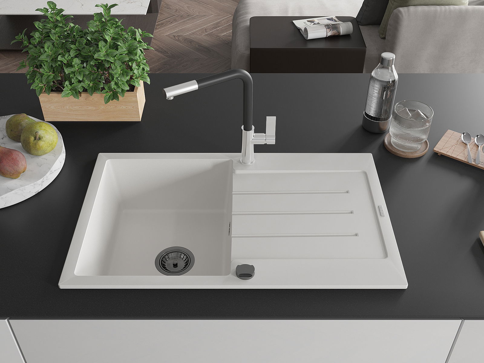 Мивката е направена от висококачествен гранит. Това е елегантно и най -вече практично допълнение към всяка кухня, независимо от нейния стил. Висококачествената и гранитна издръжливост осигуряват много години употреба.