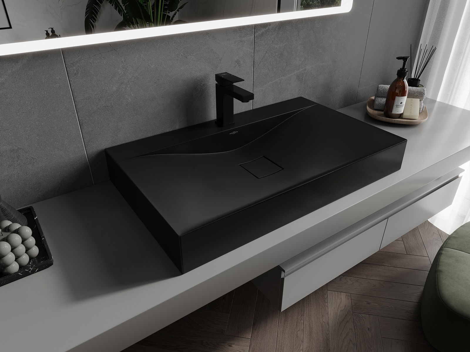 Матовата повърхност на керамиката перфектно подчертава естеството на цвета на продукта, придавайки му уникален и изразителен завършек. Фината структура на матовата керамика въвежда елегантност в банята, създавайки естетическо пространство.