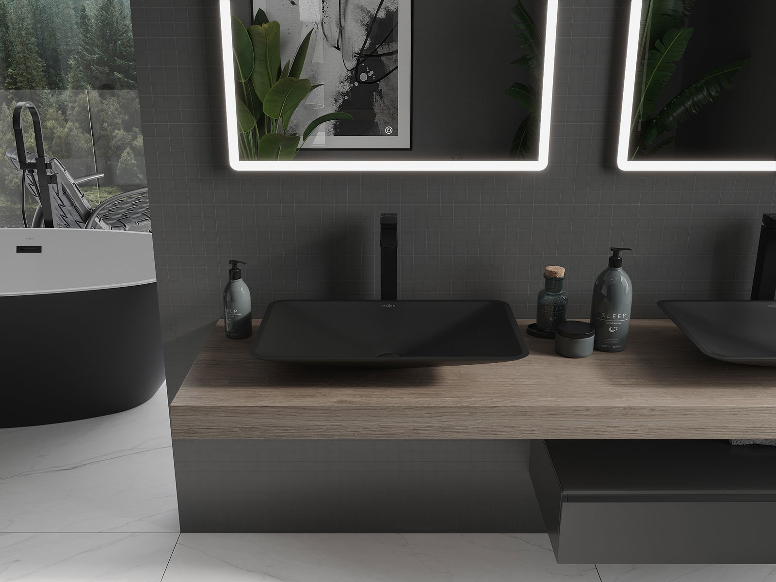 Матовата повърхност на керамиката перфектно подчертава естеството на цвета на продукта, придавайки му уникален и изразителен завършек. Фината структура на матовата керамика въвежда елегантност в банята, създавайки естетическо пространство.