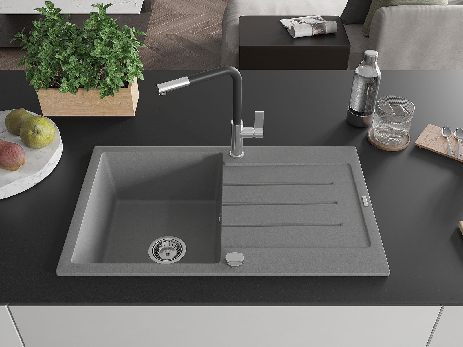 Мивката е направена от висококачествен гранит. Това е елегантно и най -вече практично допълнение към всяка кухня, независимо от нейния стил. Висококачествената и гранитна издръжливост осигуряват много години употреба.