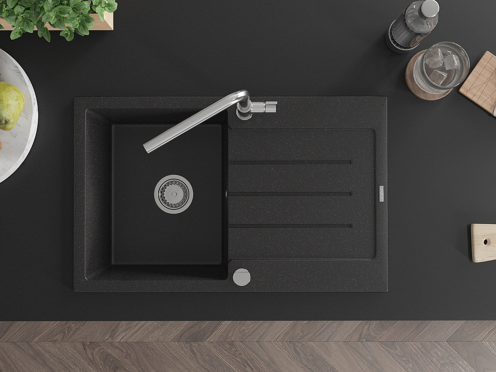 Мивката е направена от висококачествен гранит. Това е елегантно и най -вече практично допълнение към всяка кухня, независимо от нейния стил. Висококачествената и гранитна издръжливост осигуряват много години употреба.
