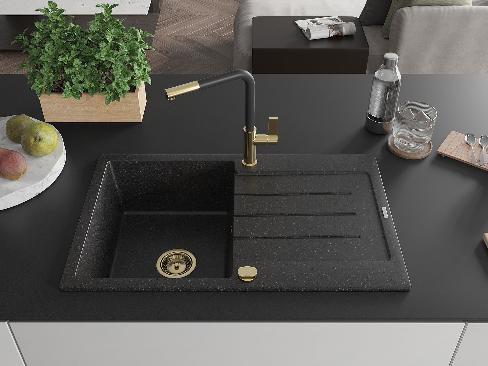 Мивката е направена от висококачествен гранит. Това е елегантно и най -вече практично допълнение към всяка кухня, независимо от нейния стил. Висококачествената и гранитна издръжливост осигуряват много години употреба.