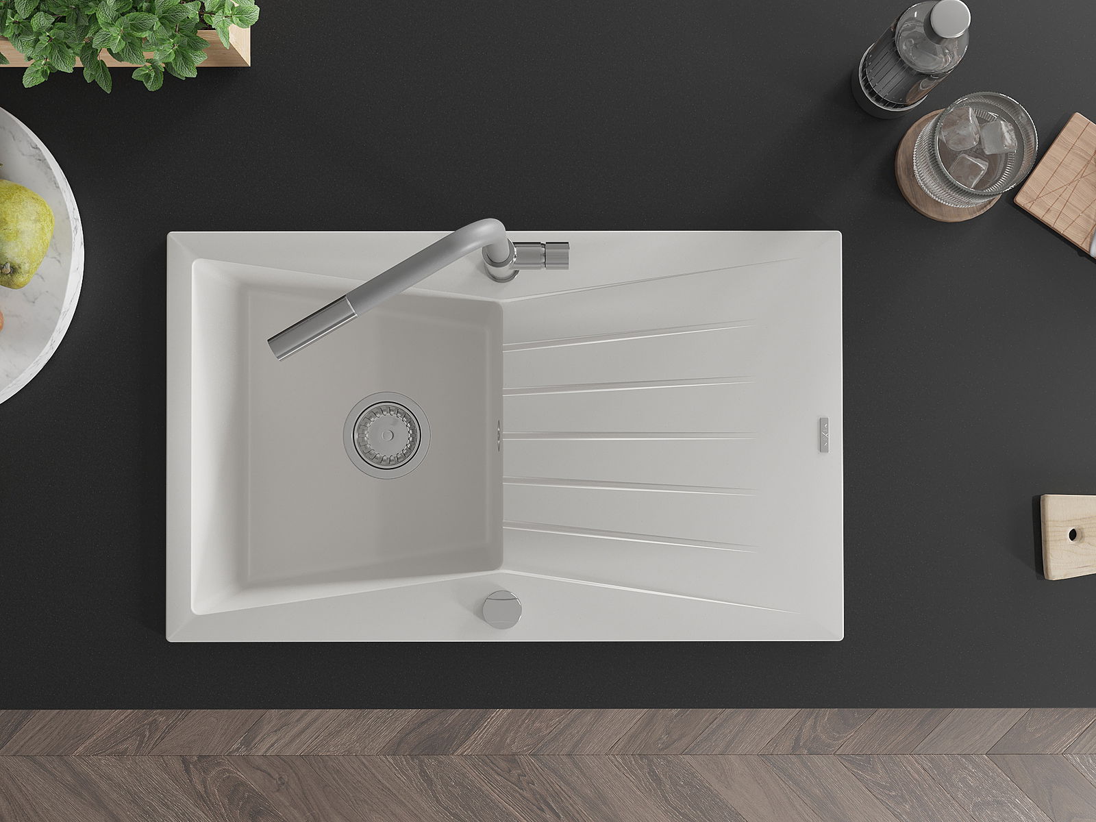 Повърхността на мивката е устойчива на петна и обезцветяване, благодарение на които е лесно да се почиства и запазва цвета си за дълго време. Естетически и практически допълващи всяка кухня.