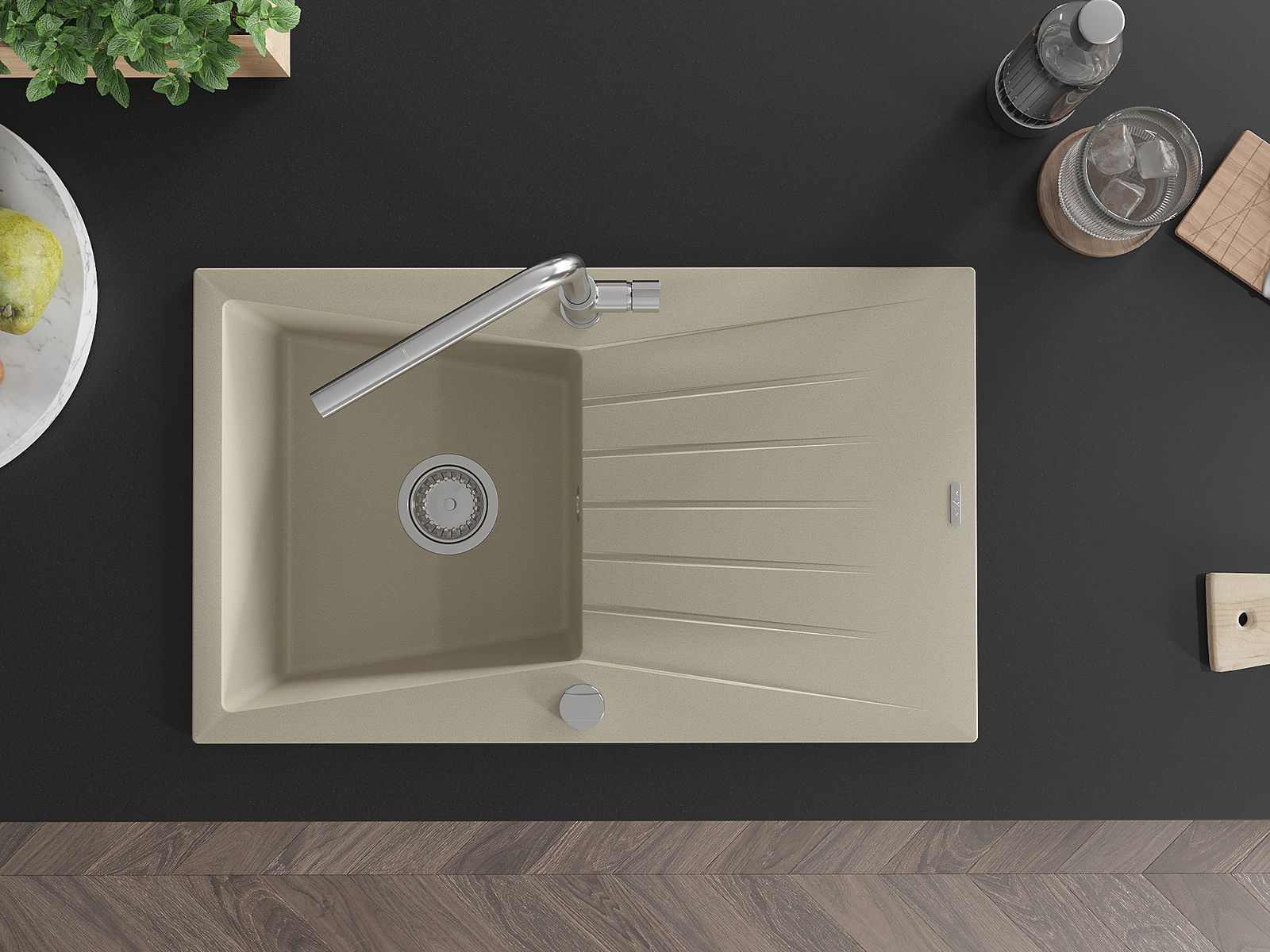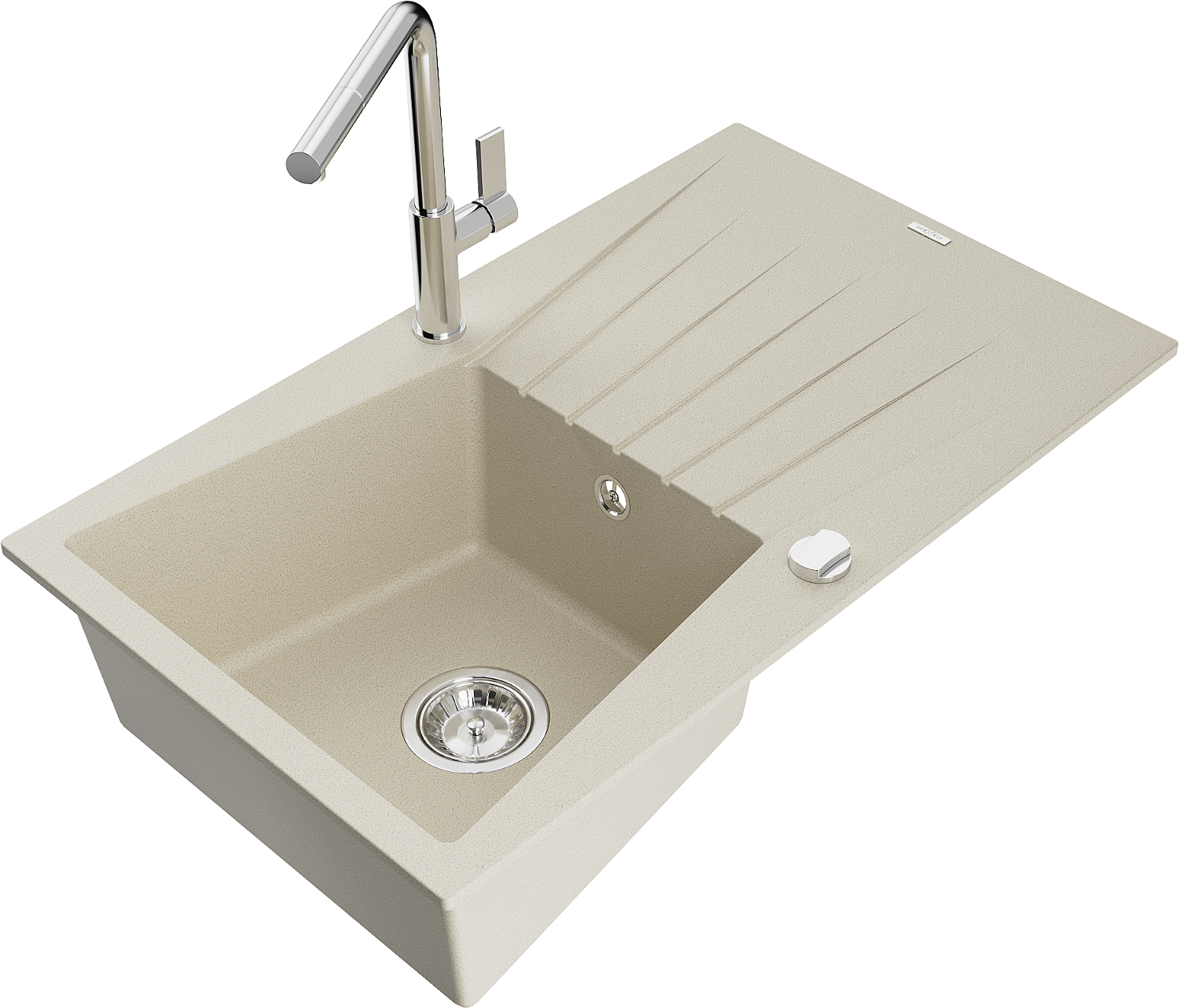 Повърхността на мивката е устойчива на петна и обезцветяване, благодарение на които е лесно да се почиства и запазва цвета си за дълго време. Естетически и практически допълващи всяка кухня.