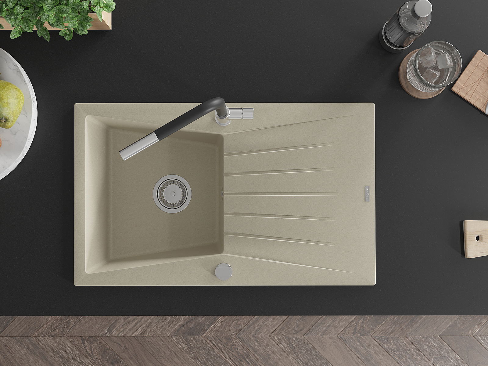 Мивката е направена от висококачествен гранит. Това е елегантно и най -вече практично допълнение към всяка кухня, независимо от нейния стил. Висококачествената и гранитна издръжливост осигуряват много години употреба.