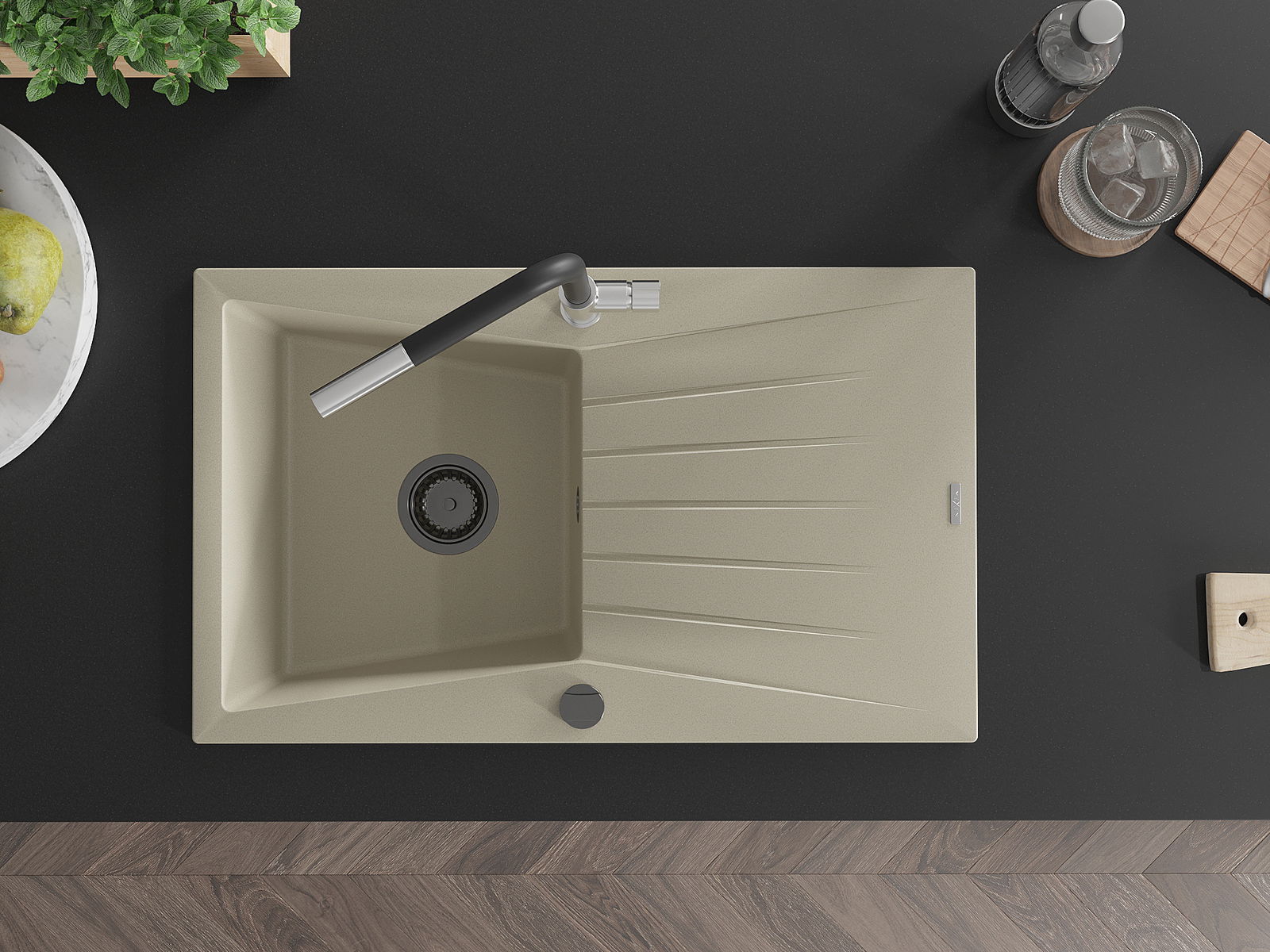 Мивката е направена от висококачествен гранит. Това е елегантно и най -вече практично допълнение към всяка кухня, независимо от нейния стил. Висококачествената и гранитна издръжливост осигуряват много години употреба.