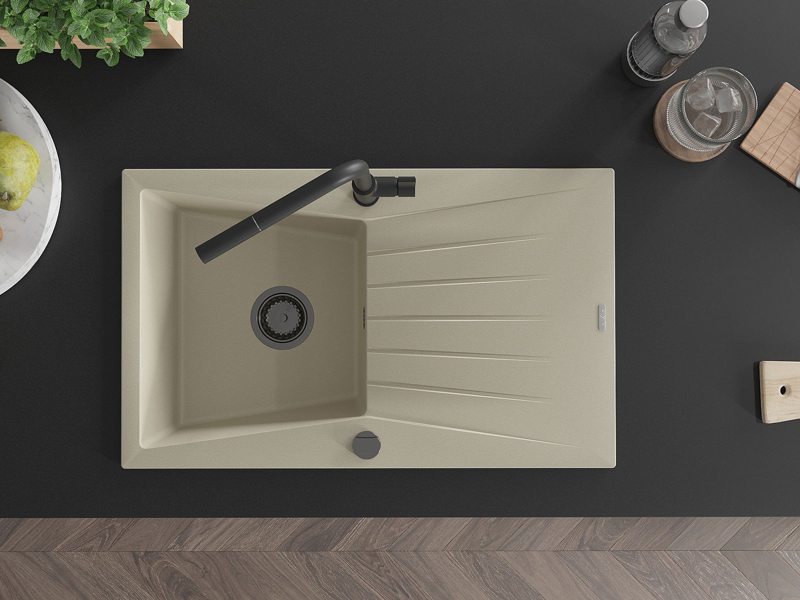 Mexen Cesar кухненска мивка от гранит с една камера и отцедник и кухненски смесител Flora, бежов - 6514-69-670401-70-B