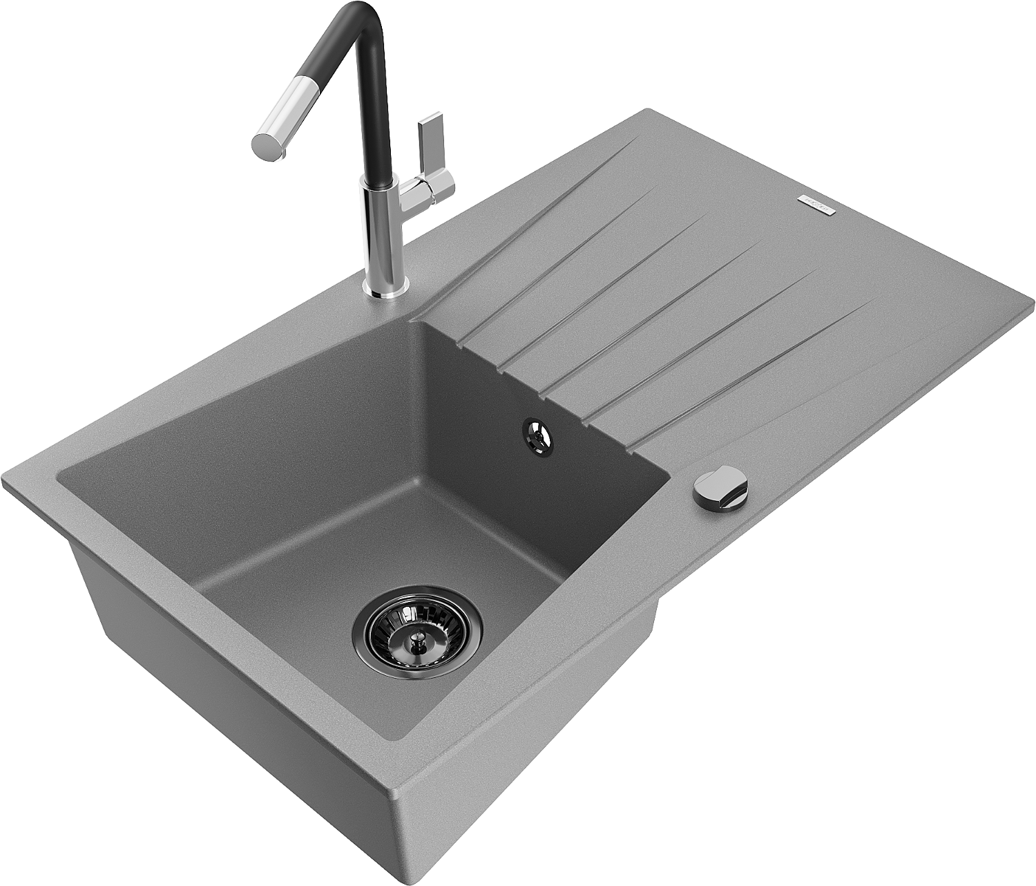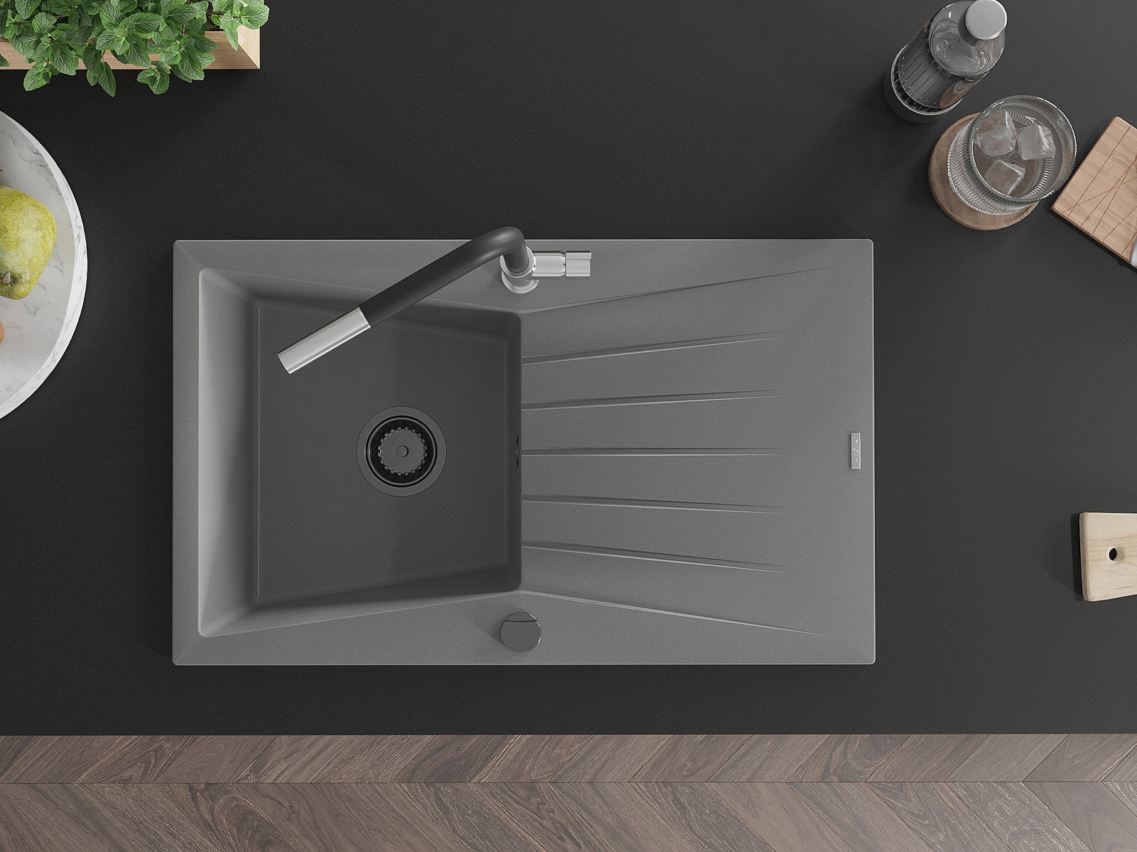 Mexen Cesar градинен мивка 1-камерна с отцедник и кухненски смесител Flora, сив - 6514-71-670401-07-B