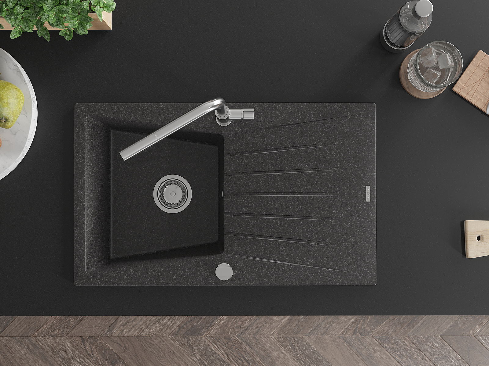 Мивката е направена от висококачествен гранит. Това е елегантно и най -вече практично допълнение към всяка кухня, независимо от нейния стил. Висококачествената и гранитна издръжливост осигуряват много години употреба.