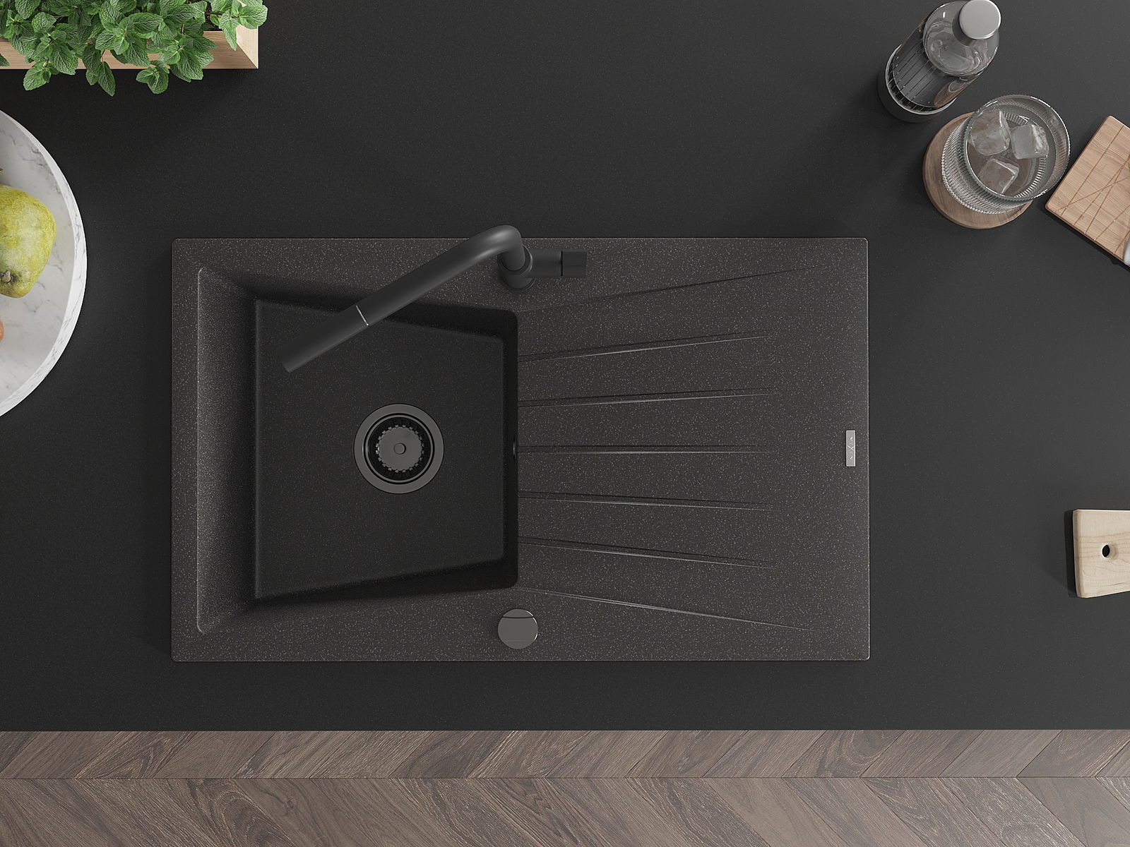 Мивката е направена от висококачествен гранит. Това е елегантно и най -вече практично допълнение към всяка кухня, независимо от нейния стил. Висококачествената и гранитна издръжливост осигуряват много години употреба.