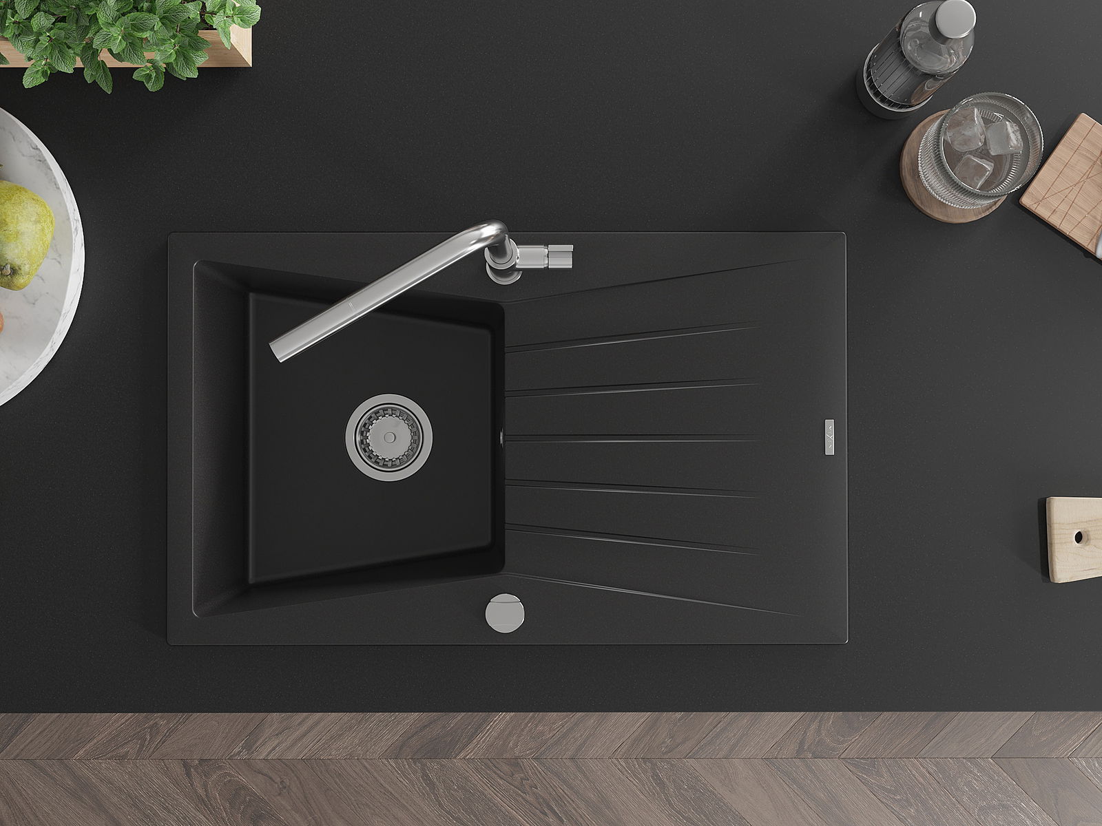 Мивката е направена от висококачествен гранит. Това е елегантно и най -вече практично допълнение към всяка кухня, независимо от нейния стил. Висококачествената и гранитна издръжливост осигуряват много години употреба.