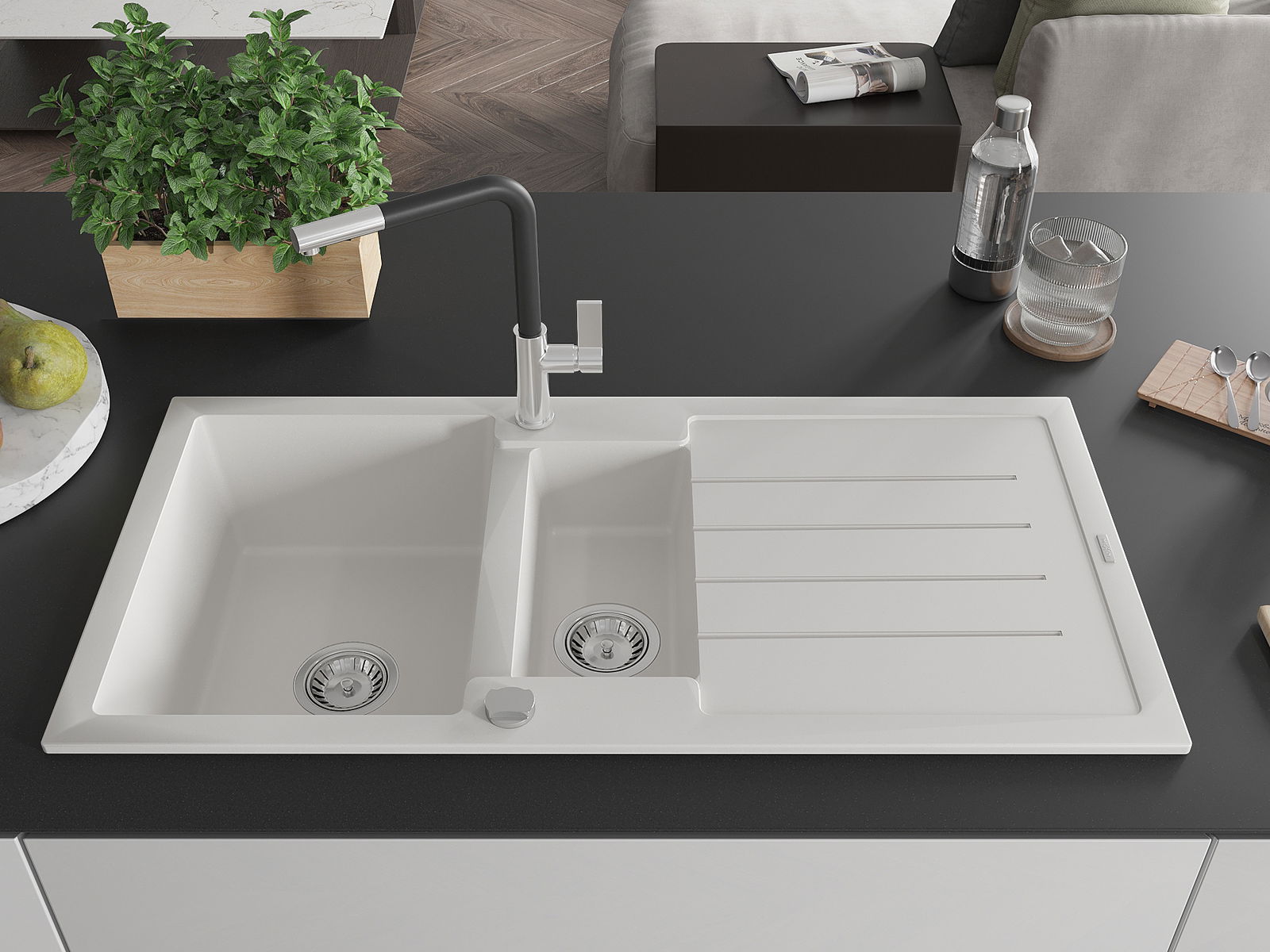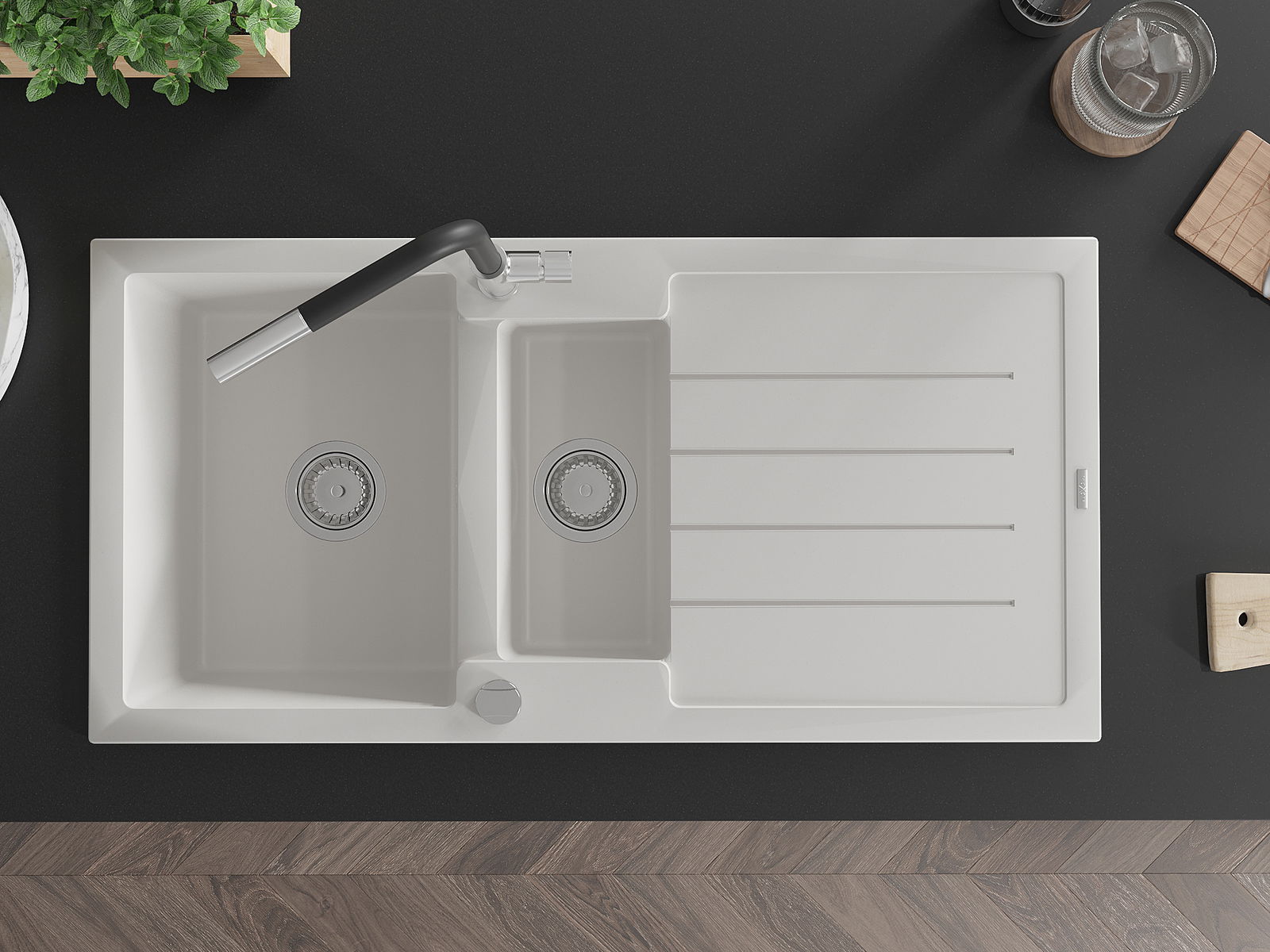 Повърхността на мивката е устойчива на петна и обезцветяване, благодарение на които е лесно да се почиства и запазва цвета си за дълго време. Естетически и практически допълващи всяка кухня.