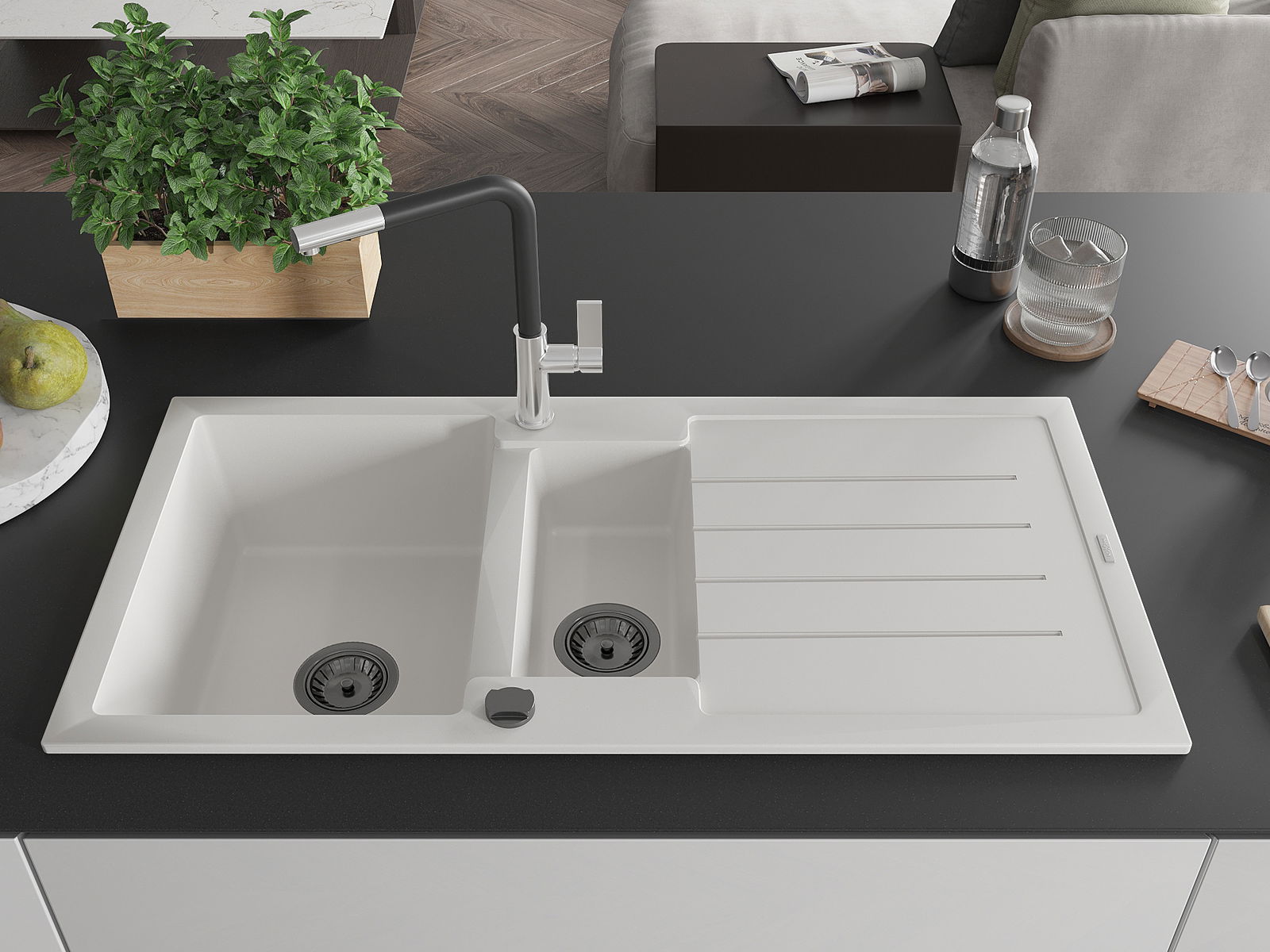Повърхността на мивката е устойчива на петна и обезцветяване, благодарение на които е лесно да се почиства и запазва цвета си за дълго време. Естетически и практически допълващи всяка кухня.