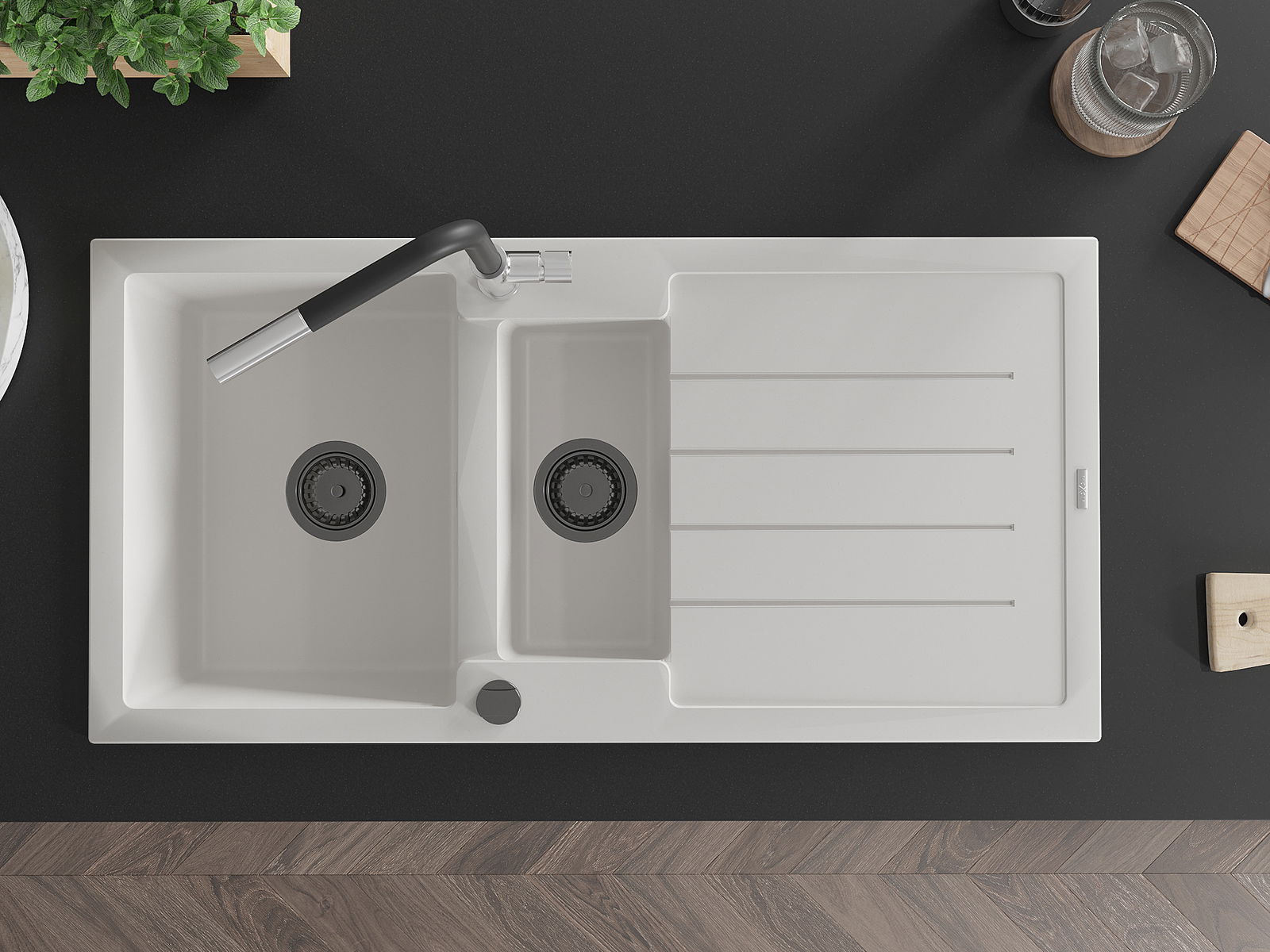 Мивката е направена от висококачествен гранит. Това е елегантно и най -вече практично допълнение към всяка кухня, независимо от нейния стил. Висококачествената и гранитна издръжливост осигуряват много години употреба.