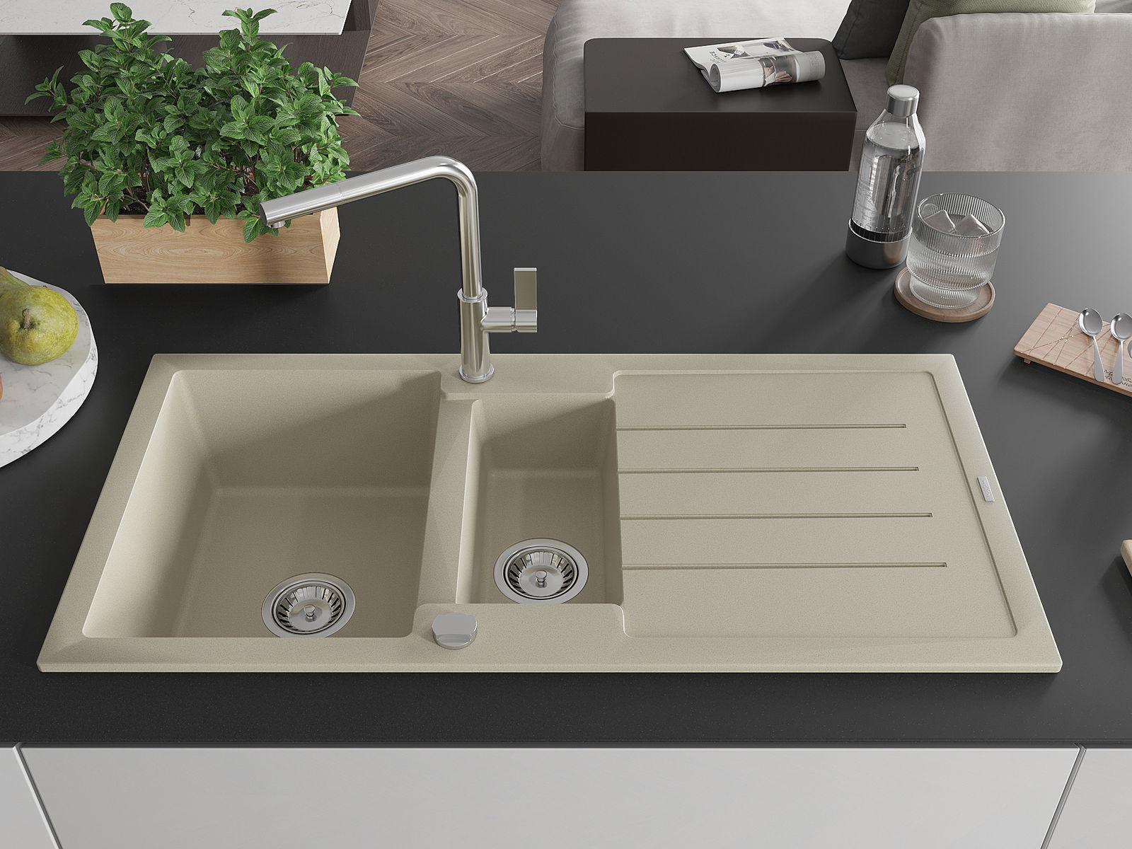 Изборът на мивка със сушилник е практично решение, което позволява да оставите измити съдове или зеленчуци и плодове. Сушилникът улеснява ежедневното готвене и помага за поддържане на ред в кухнята.