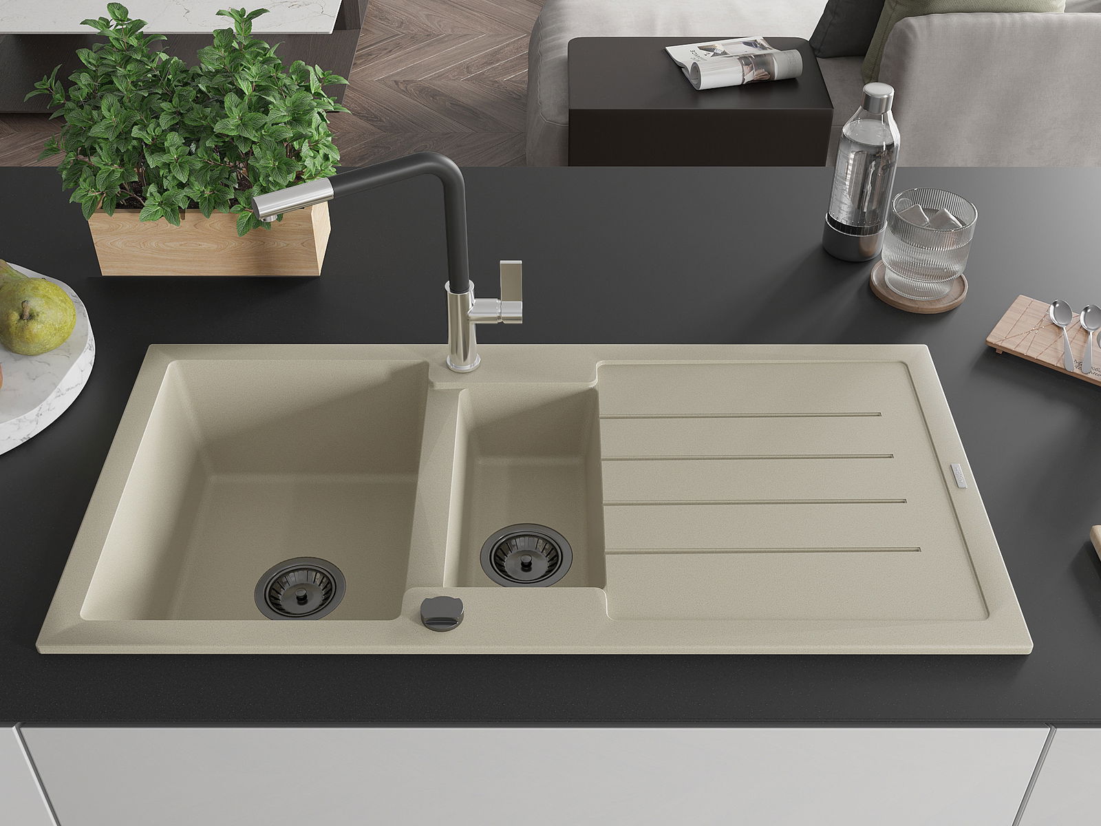 Мивката е направена от висококачествен гранит. Това е елегантно и най -вече практично допълнение към всяка кухня, независимо от нейния стил. Висококачествената и гранитна издръжливост осигуряват много години употреба.