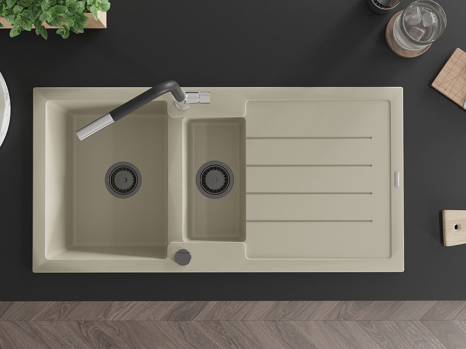 Повърхността на мивката е устойчива на петна и обезцветяване, благодарение на които е лесно да се почиства и запазва цвета си за дълго време. Естетически и практически допълващи всяка кухня.