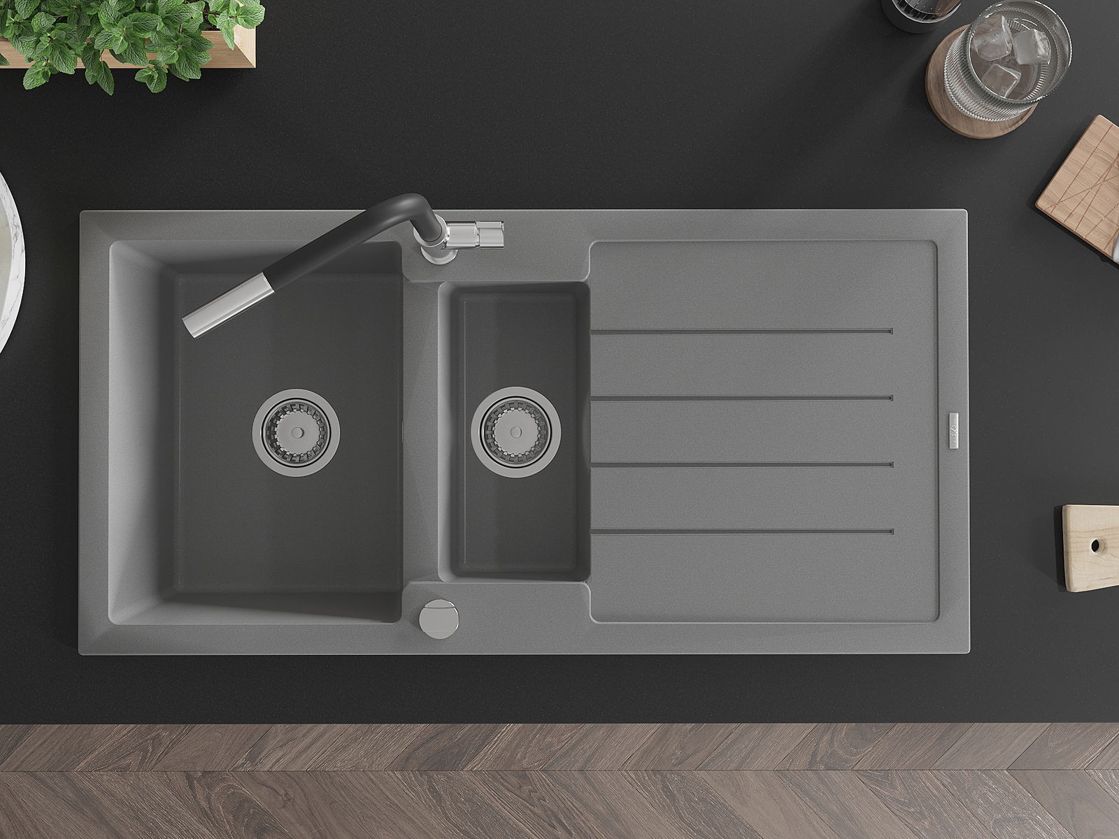 Мивката е направена от висококачествен гранит. Това е елегантно и най -вече практично допълнение към всяка кухня, независимо от нейния стил. Висококачествената и гранитна издръжливост осигуряват много години употреба.