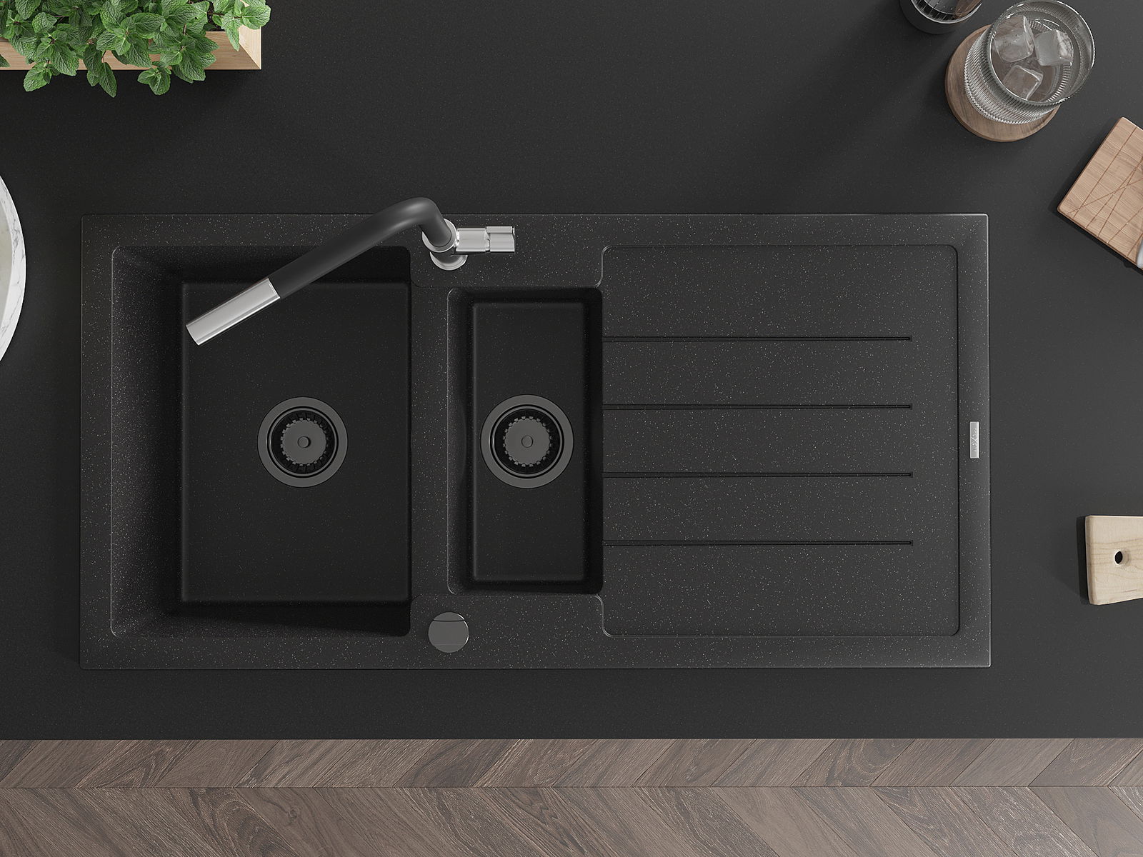 Мивката е направена от висококачествен гранит. Това е елегантно и най -вече практично допълнение към всяка кухня, независимо от нейния стил. Висококачествената и гранитна издръжливост осигуряват много години употреба.