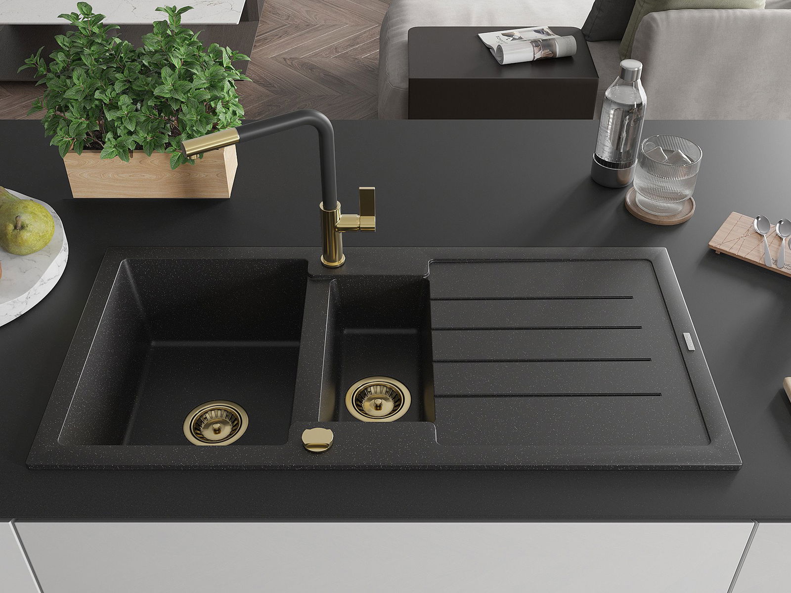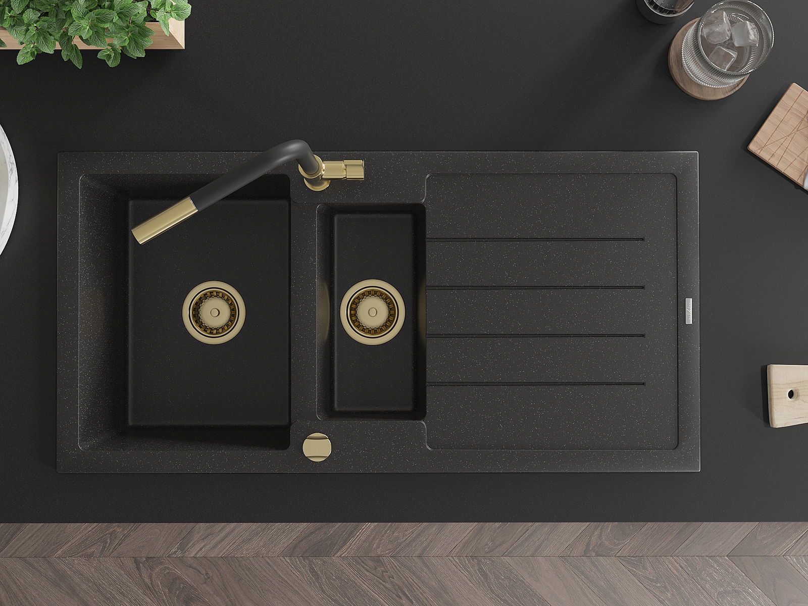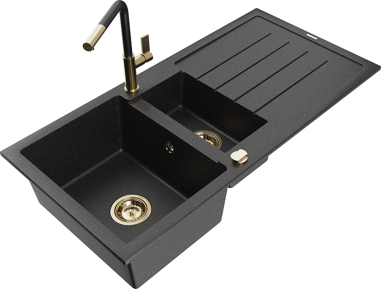 Mexen Andres гранитна мивка 1,5 камери с отцедник и кухненски смесител Flora,