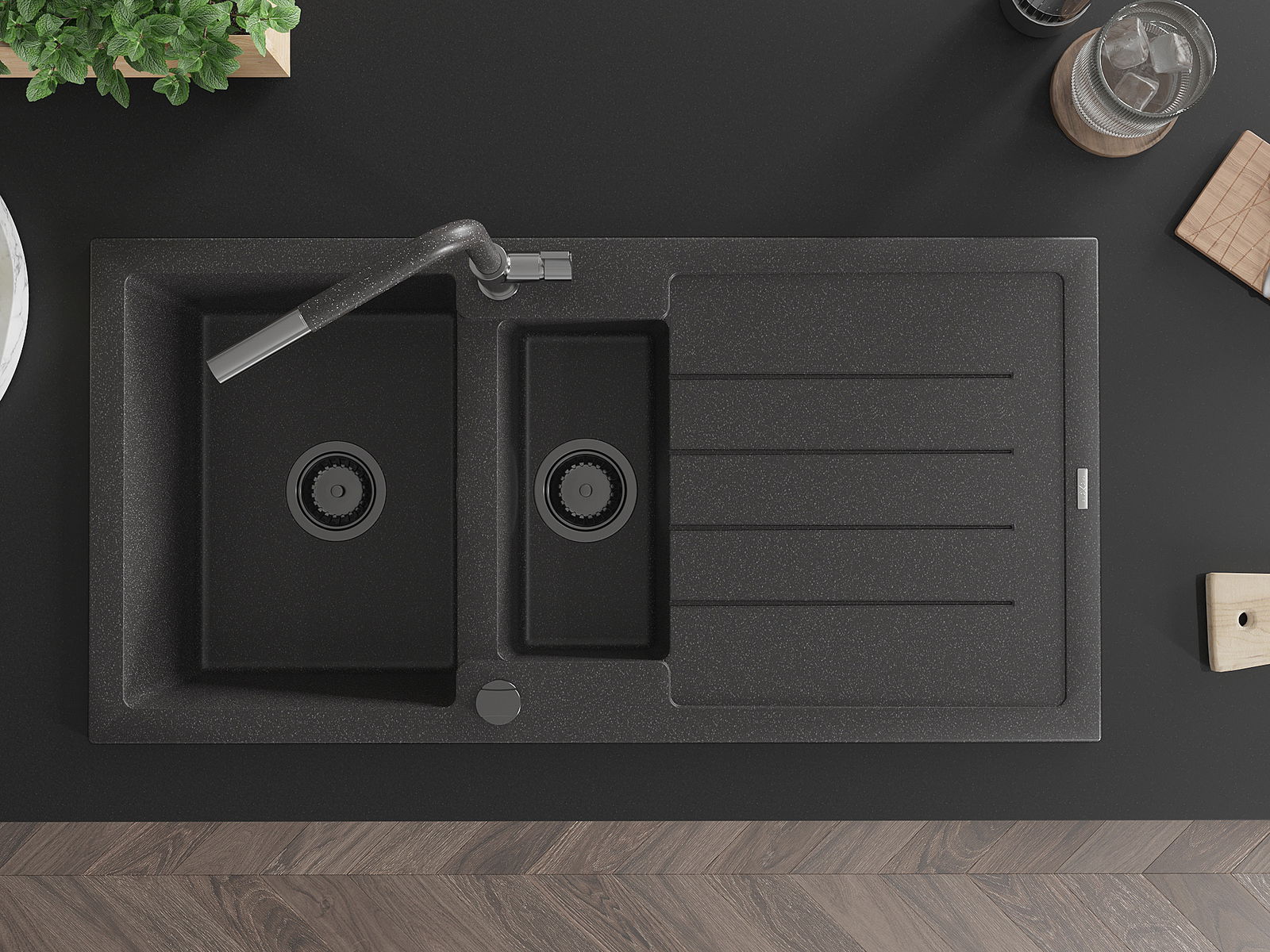 Мивката е направена от висококачествен гранит. Това е елегантно и най -вече практично допълнение към всяка кухня, независимо от нейния стил. Висококачествената и гранитна издръжливост осигуряват много години употреба.