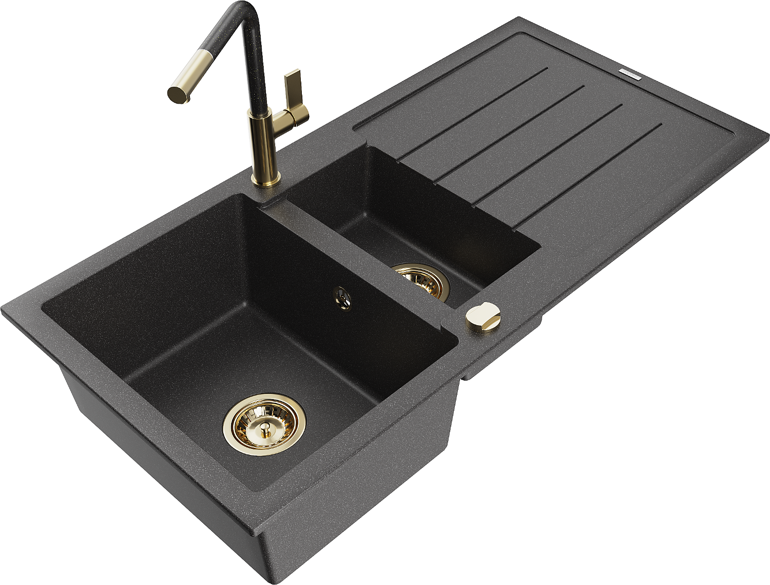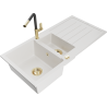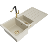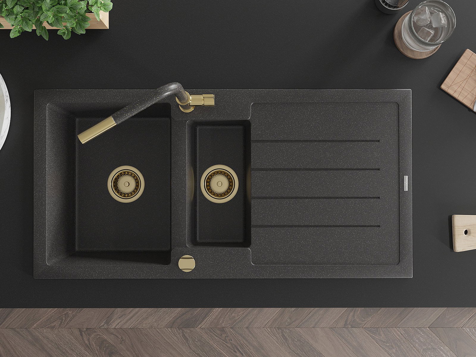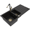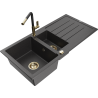 Mexen Andres гранитна мивка с 1,5 камери, с отцедник и кухненски смесител Flora,