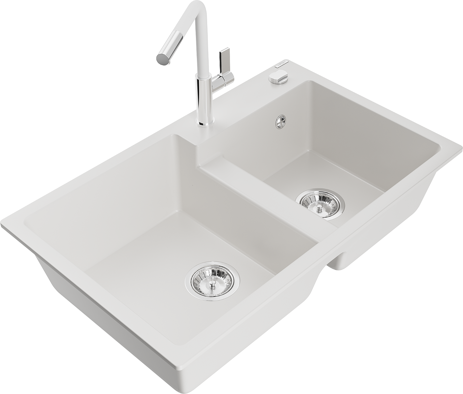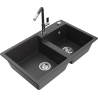 Mexen Tomas гранитна кухненска мивка с 2 отделения и кухненски смесител Flora,