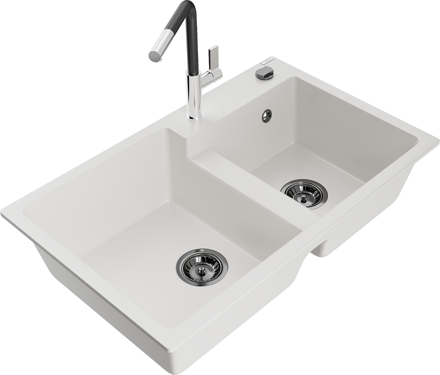Mexen Tomas гранитна двукоритна мивка с кухненски смесител Flora, бял - 6516-20-670401-07-B