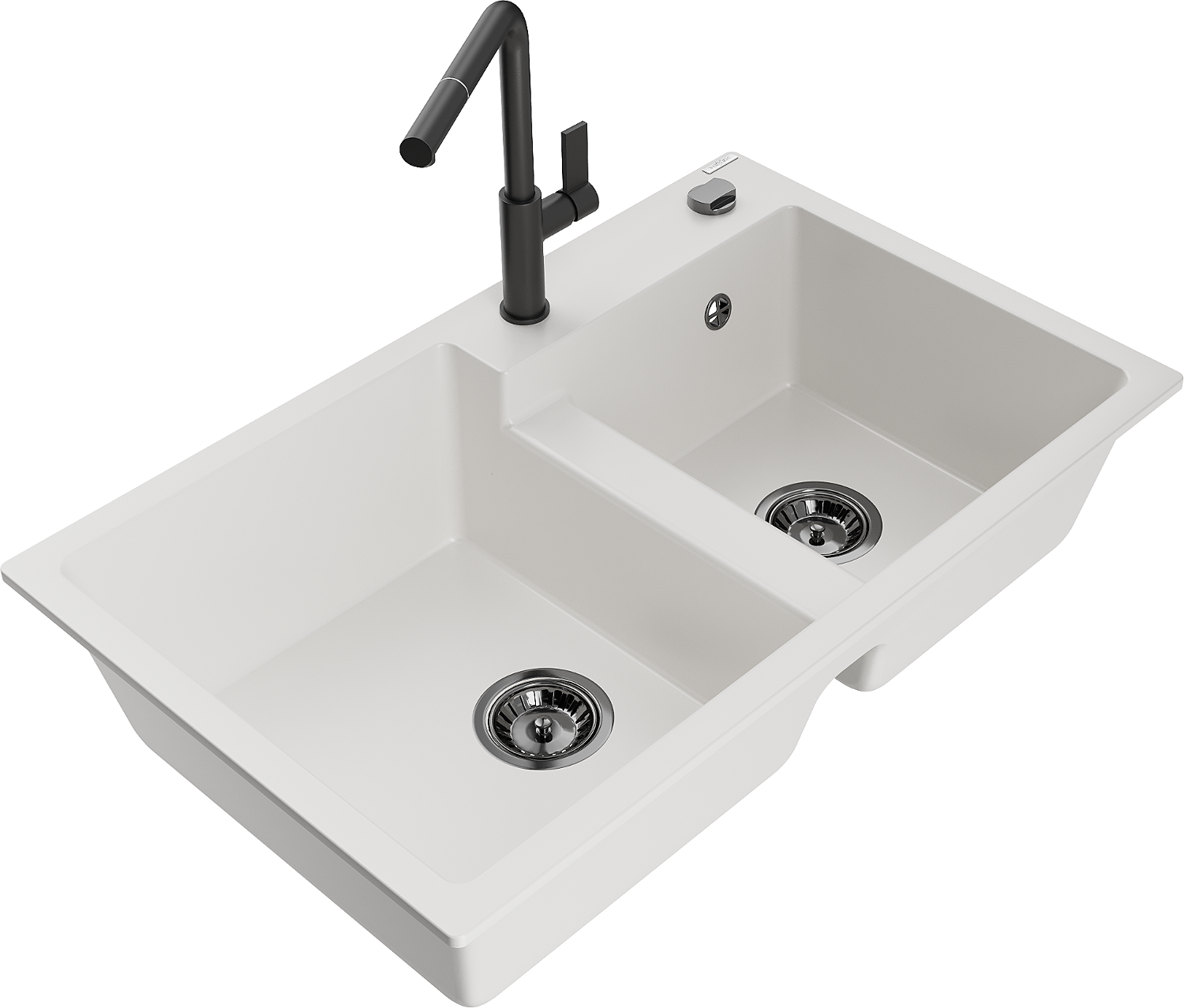 Mexen Tomas гранитна мивка с 2 отделения и кухненски смесител Flora, бял - 6516-20-670401-70-B