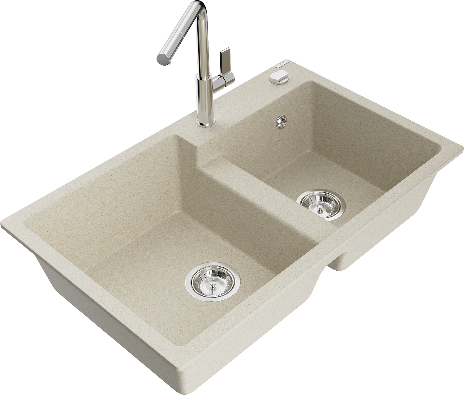 Mexen Tomas двоен гранитен мивка с кухненски смесител Flora, бежов - 6516-69-670401-00