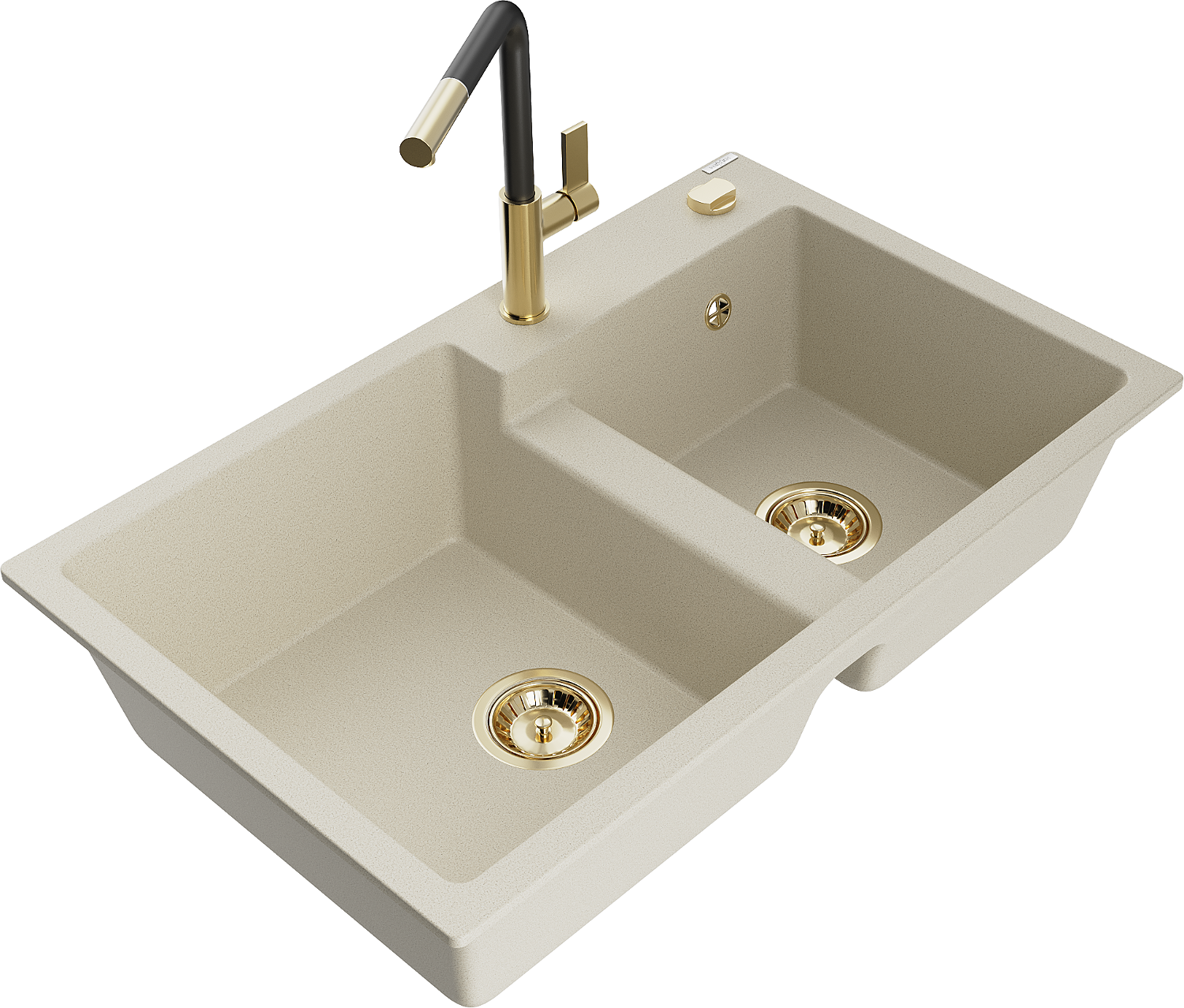 Mexen Tomas гранитна кухненска мивка с 2 камери и батерия Flora, бежова - 6516-69-670401-57-G