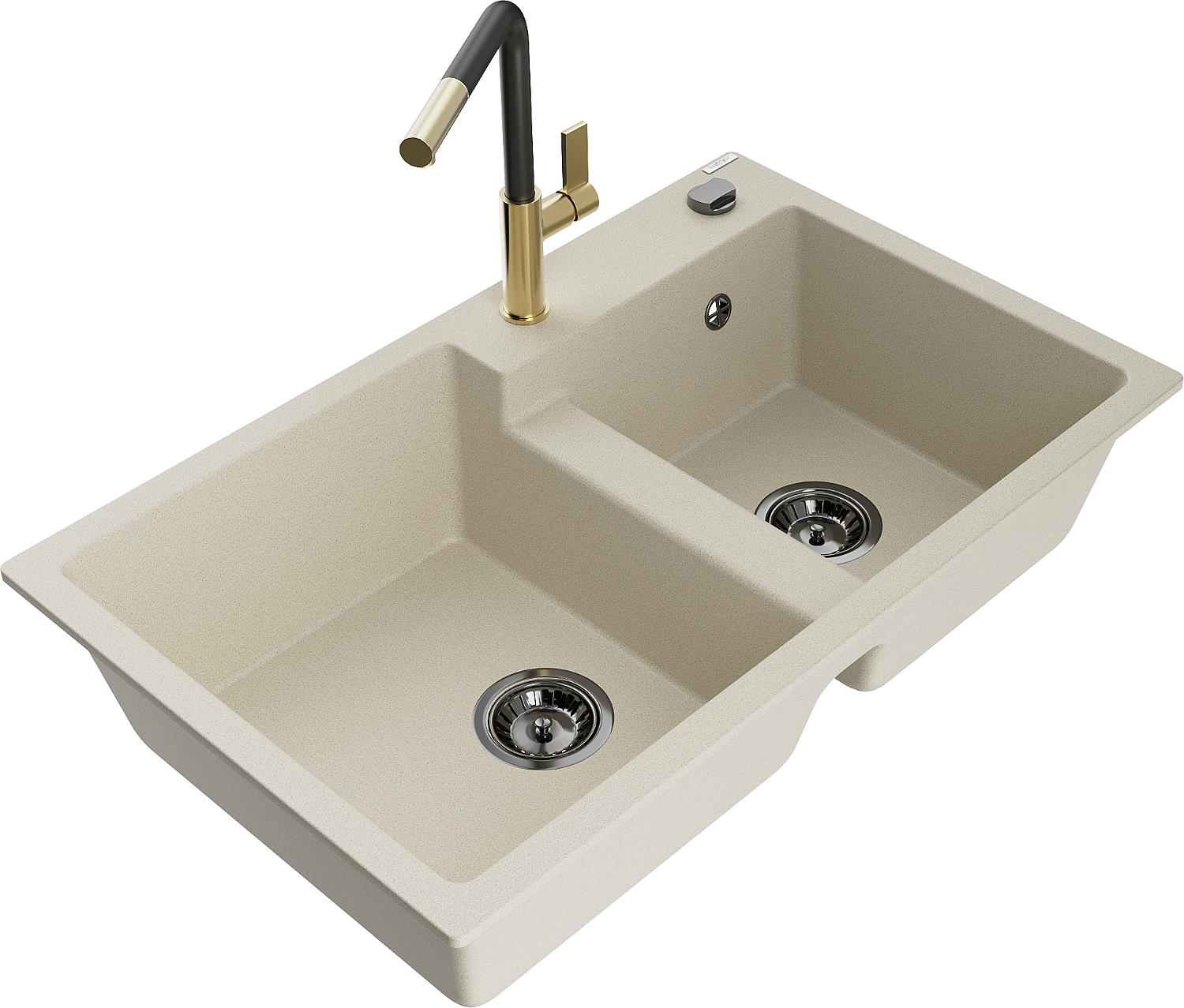 Mexen Tomas кухненска мивка от гранит с 2 отделения и кухненски смесител Flora, бежов - 6516-69-670401-57-B