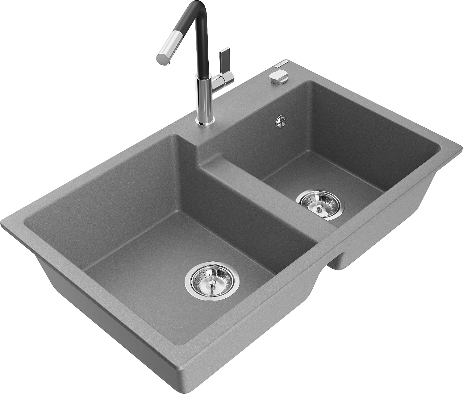 Mexen Tomas двоен гранитен мивка с кухненски смесител Flora, сив - 6516-71-670401-07