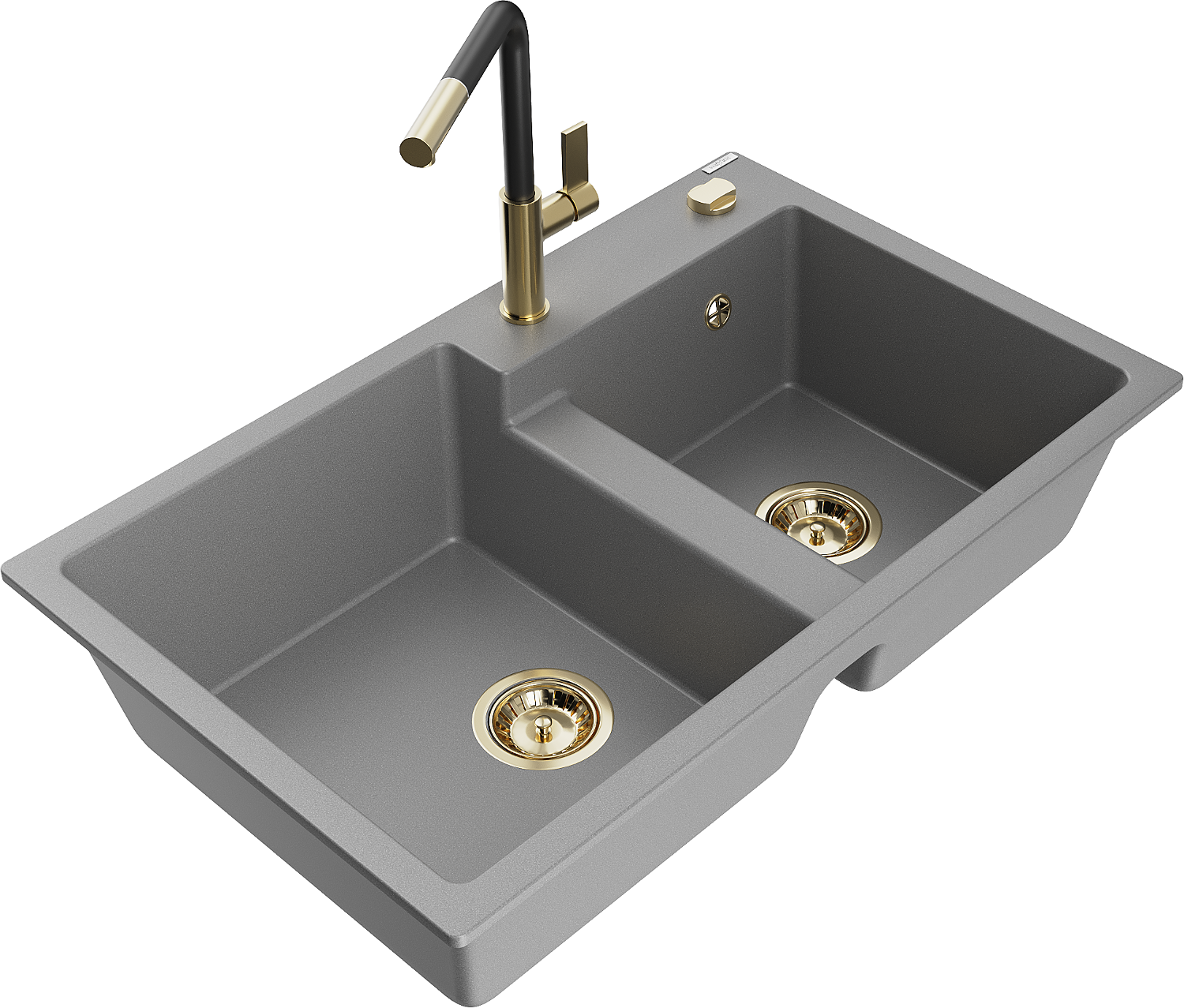 Mexen Tomas гранитна кухненска мивка с 2 отделения и кухненски смесител Flora, сива - 6516-71-670401-57-G