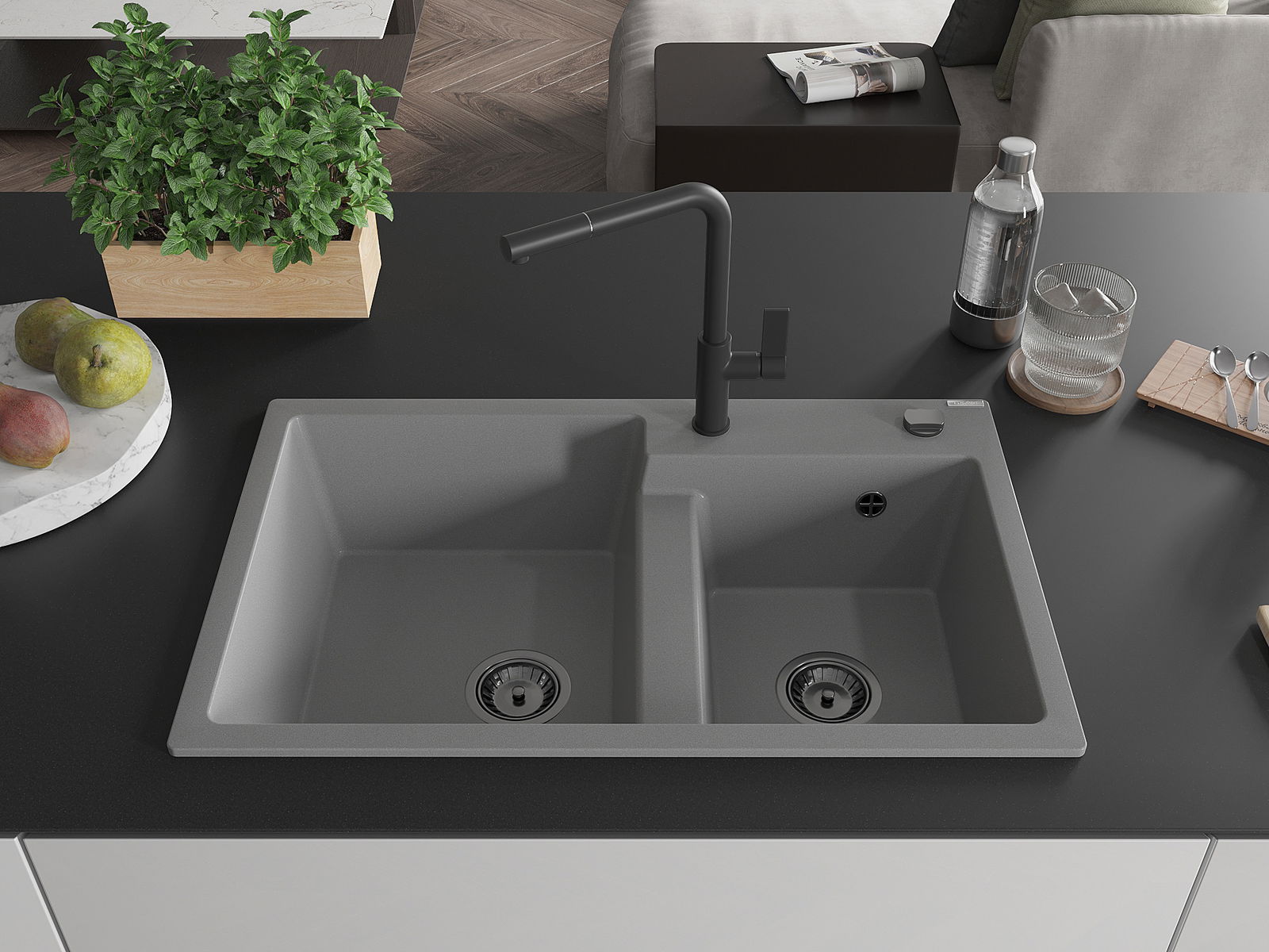 Мивката е направена от висококачествен гранит. Това е елегантно и най -вече практично допълнение към всяка кухня, независимо от нейния стил. Висококачествената и гранитна издръжливост осигуряват много години употреба.