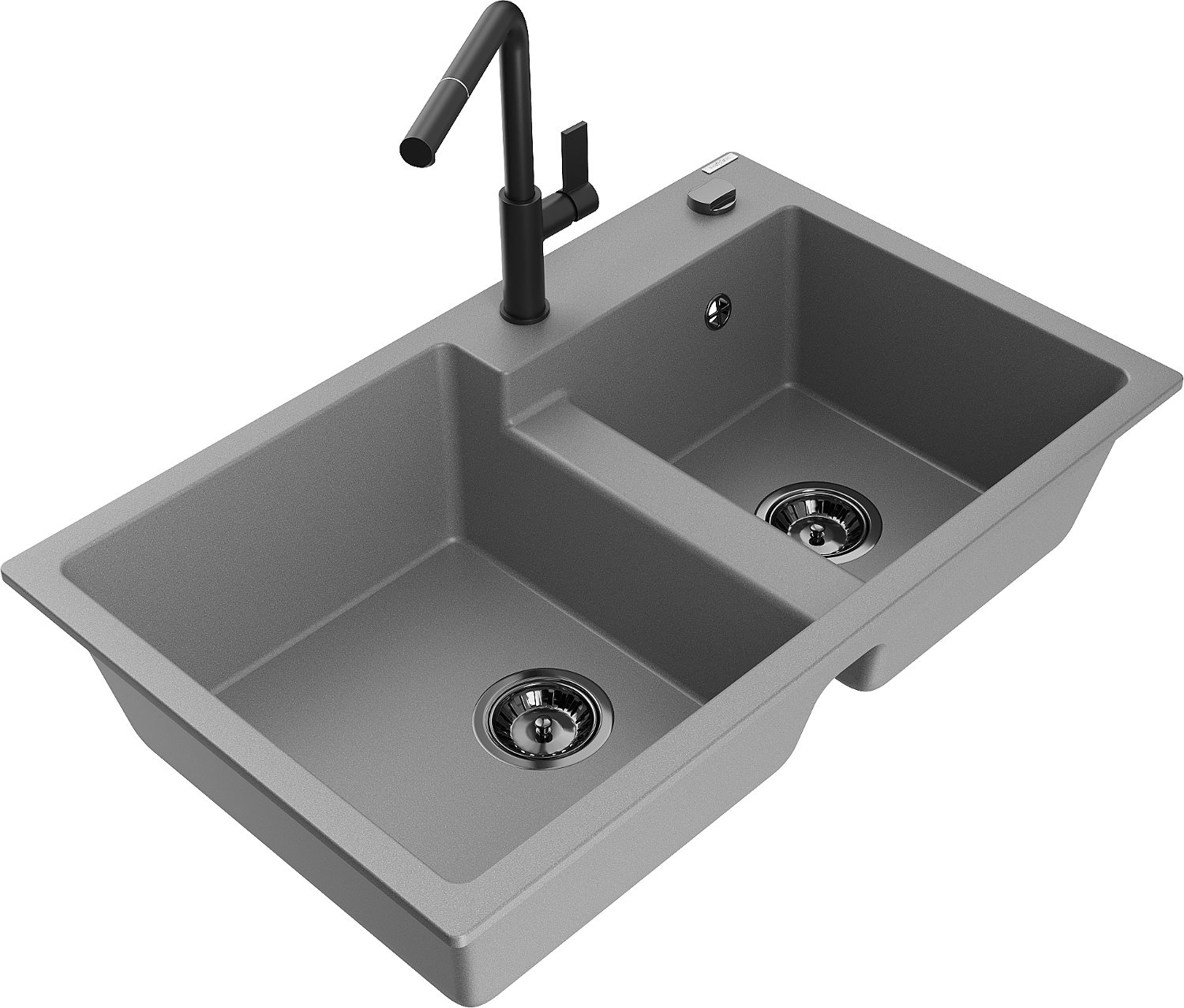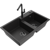 Mexen Tomas гранитна мивка с 2 камери с кухненски смесител Flora, сив - 6516-71-670401-70-B