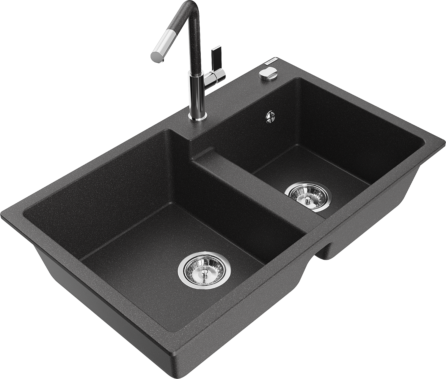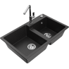 Mexen Tomas гранитна мивка с 2 корита и кухненски смесител Flora, черен на