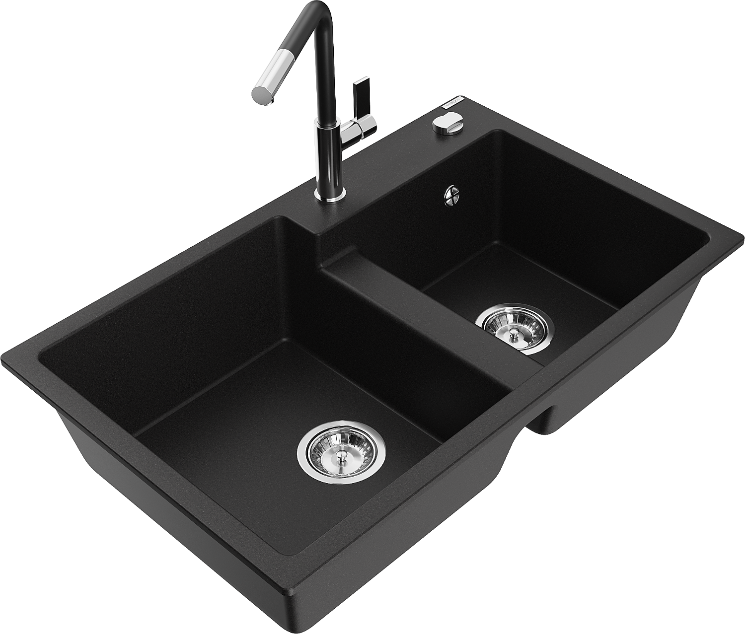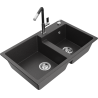 Mexen Tomas мивка от гранит с 2 камери и кухненски смесител Flora, черен - 6516-77-670401-07