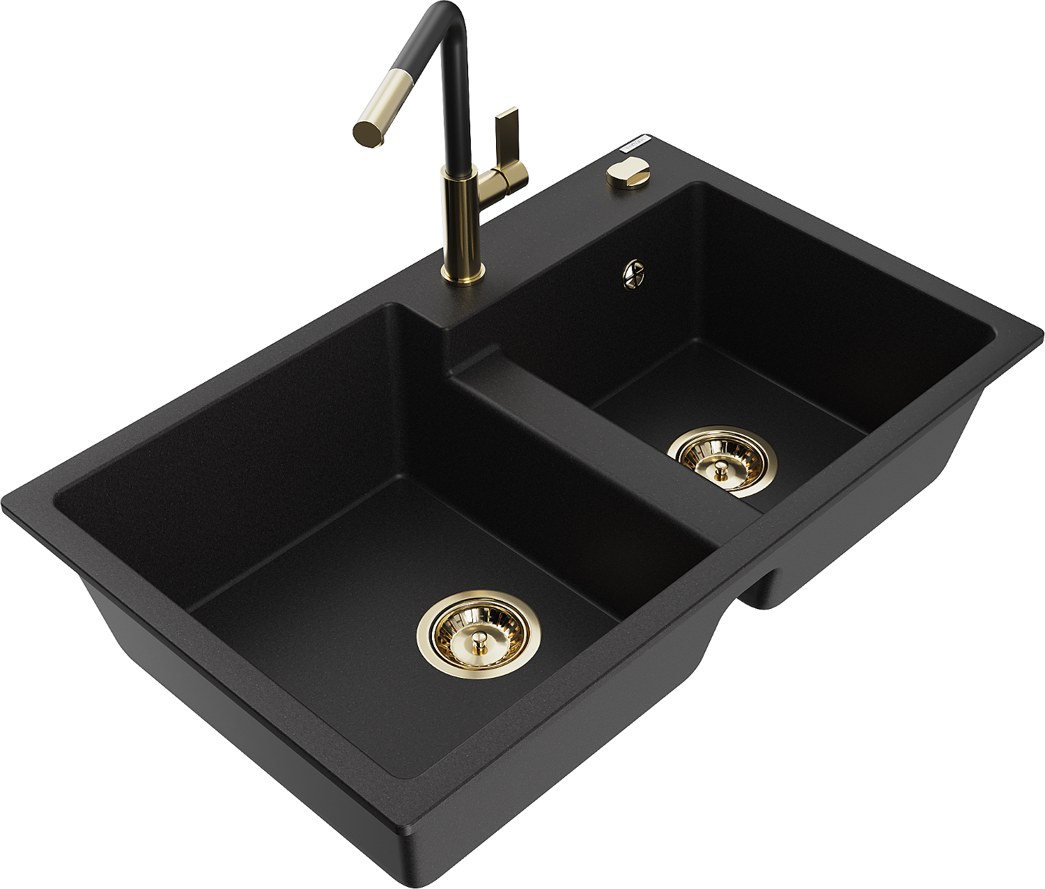 Mexen Tomas двумерен мивка от гранит с кухненски смесител Flora, черен - 6516-77-670401-57-G