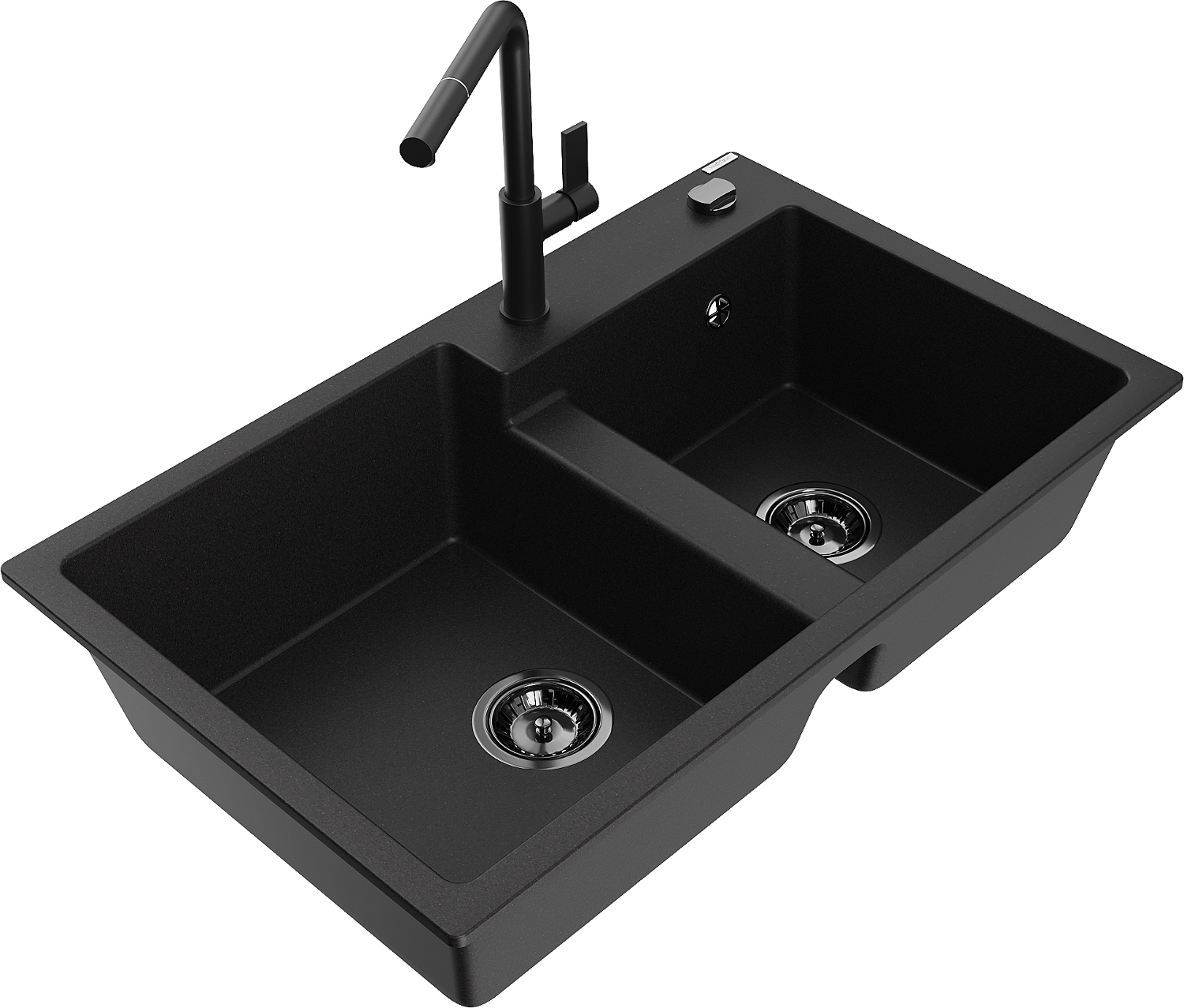 Mexen Tomas двоен мивник от гранит с кухненски смесител Flora, черен - 6516-77-670401-70-B