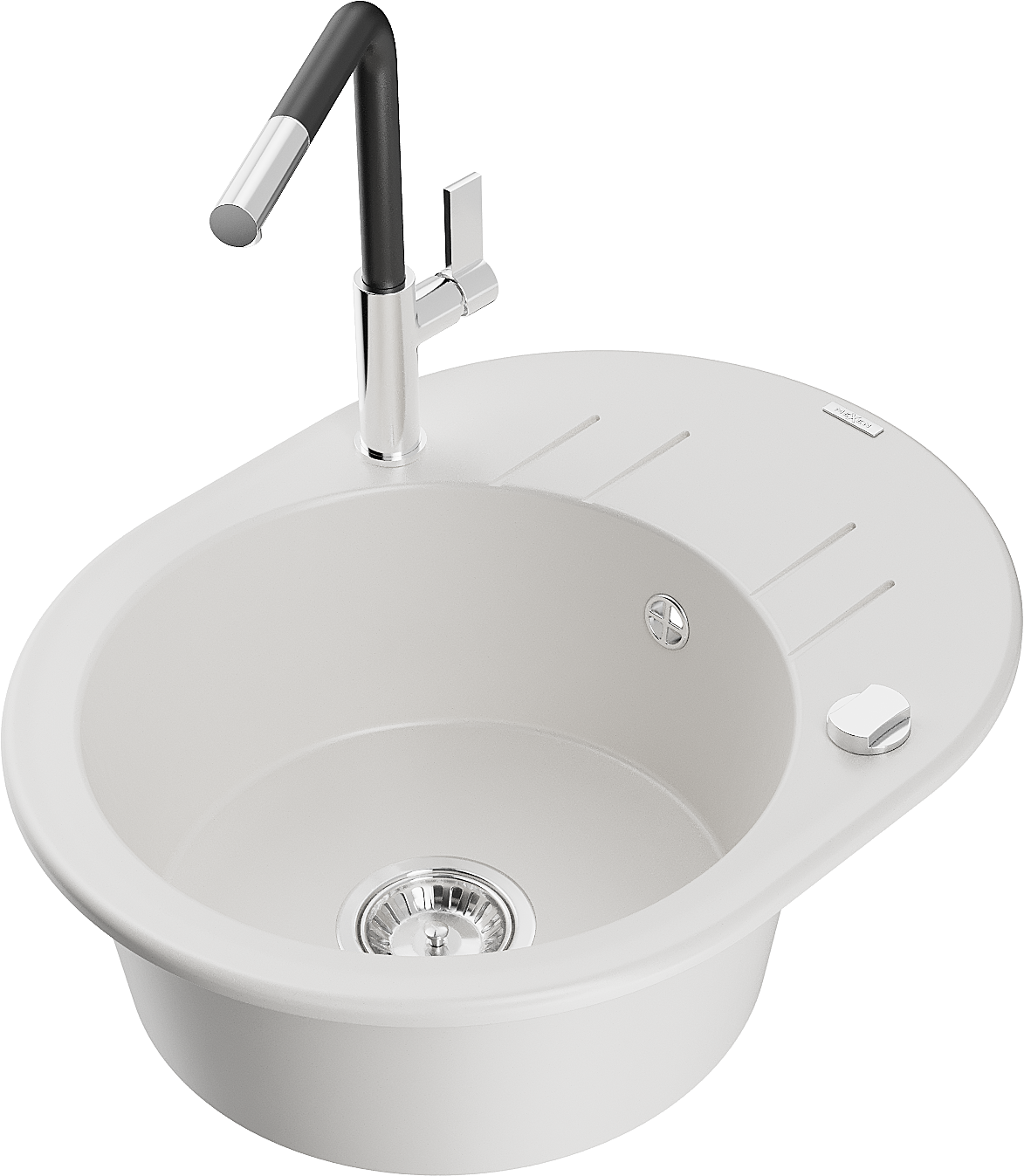 Мексан Кевин гранитна мивка с 1 отделение с отцеждане и кухненски смесител Флора, бял - 6517-20-670401-07